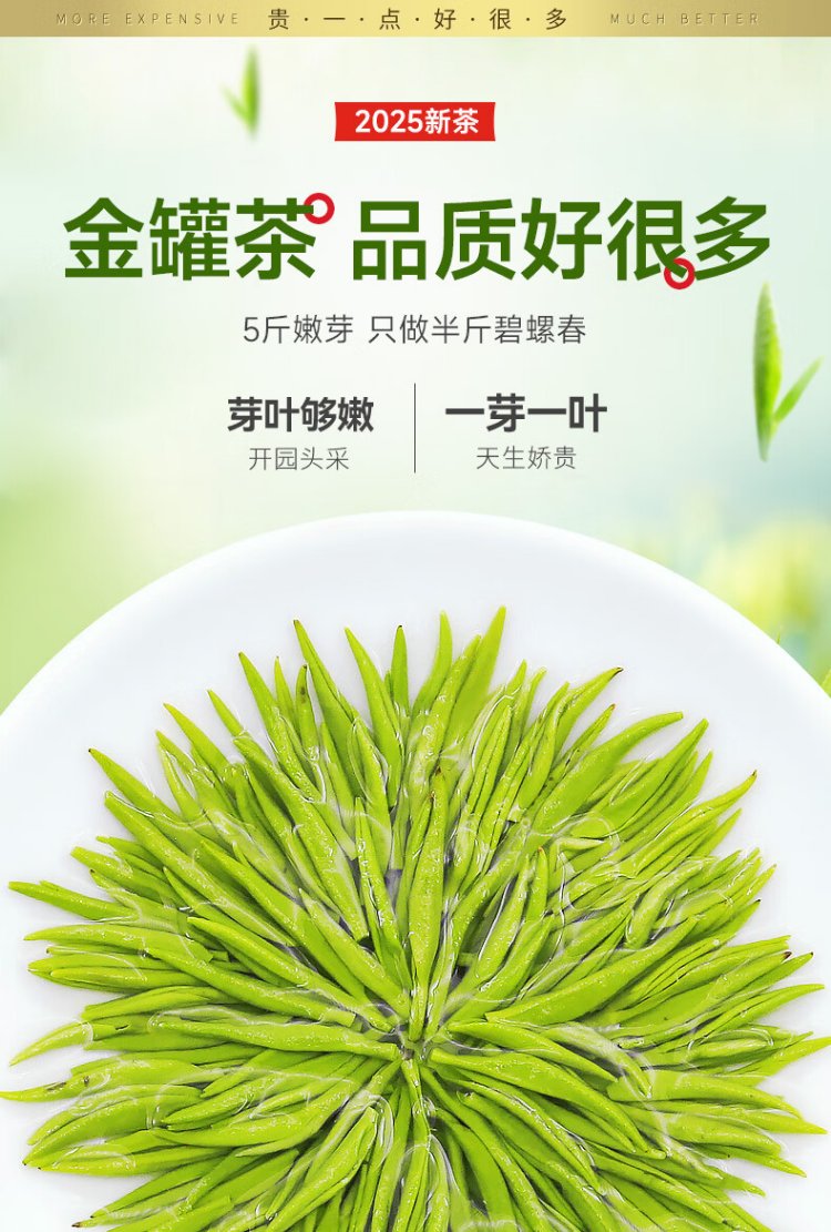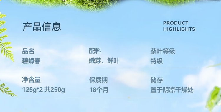 Lepinle Tea Biluochun Green Tea 2025 New Tea Mingqian Special Bud Tea Gift Box Gift Bag 250g Self-Drinking Bag