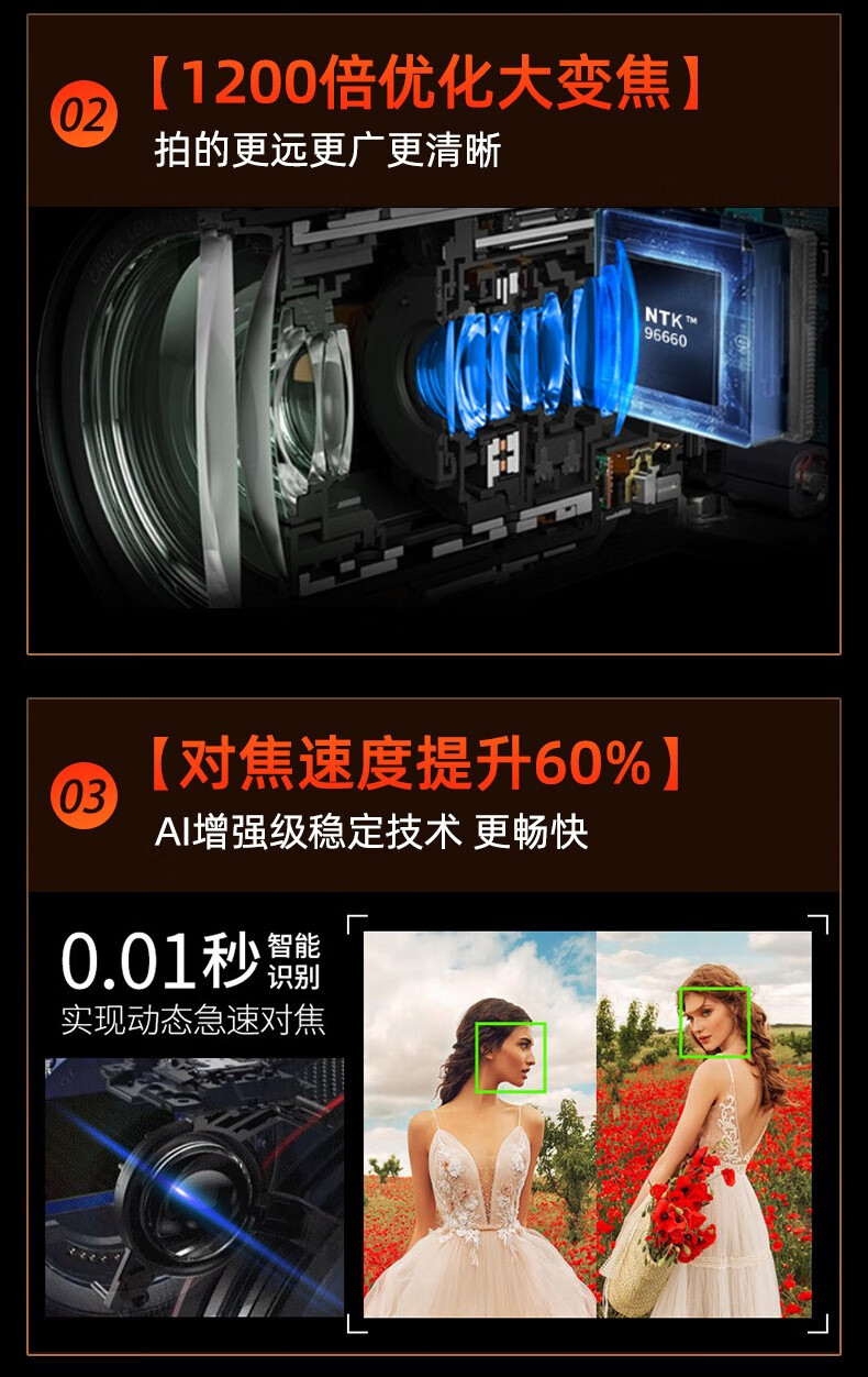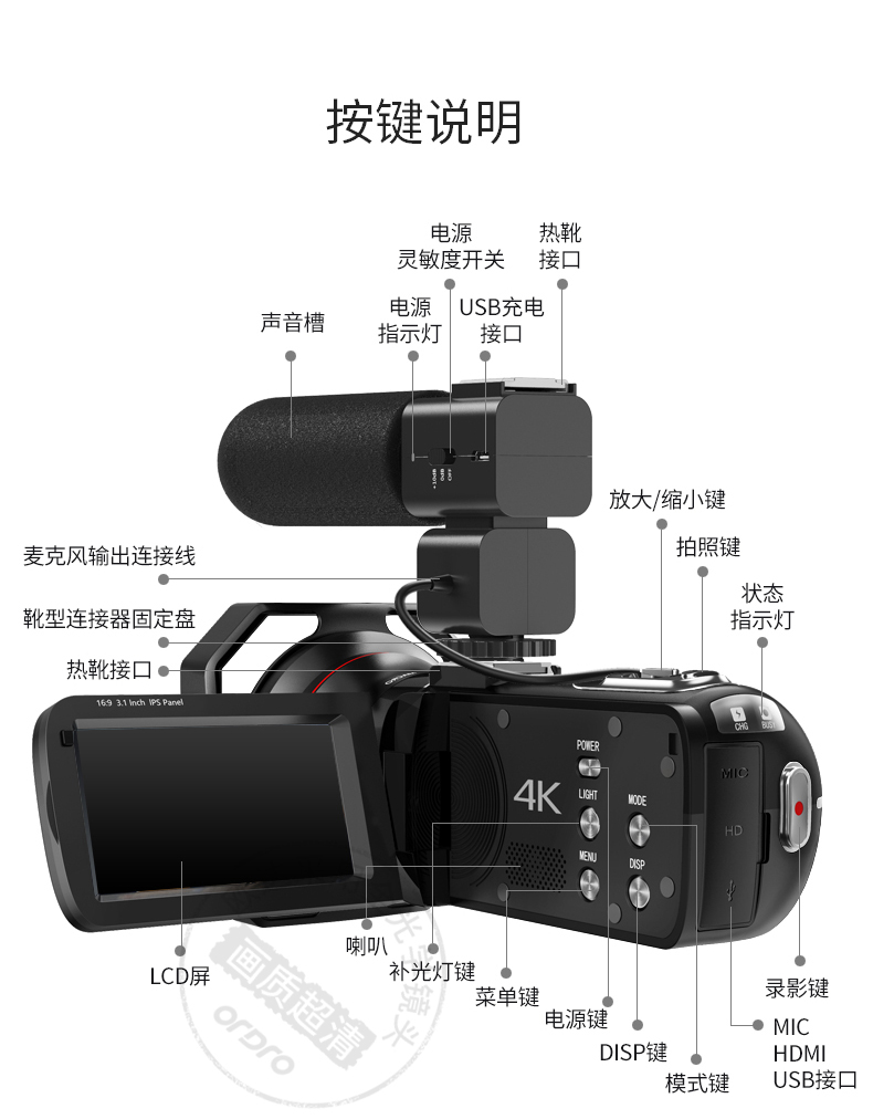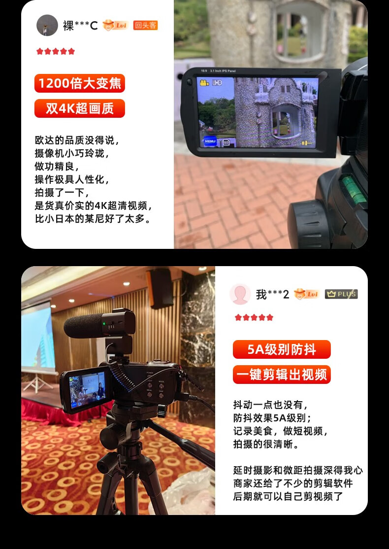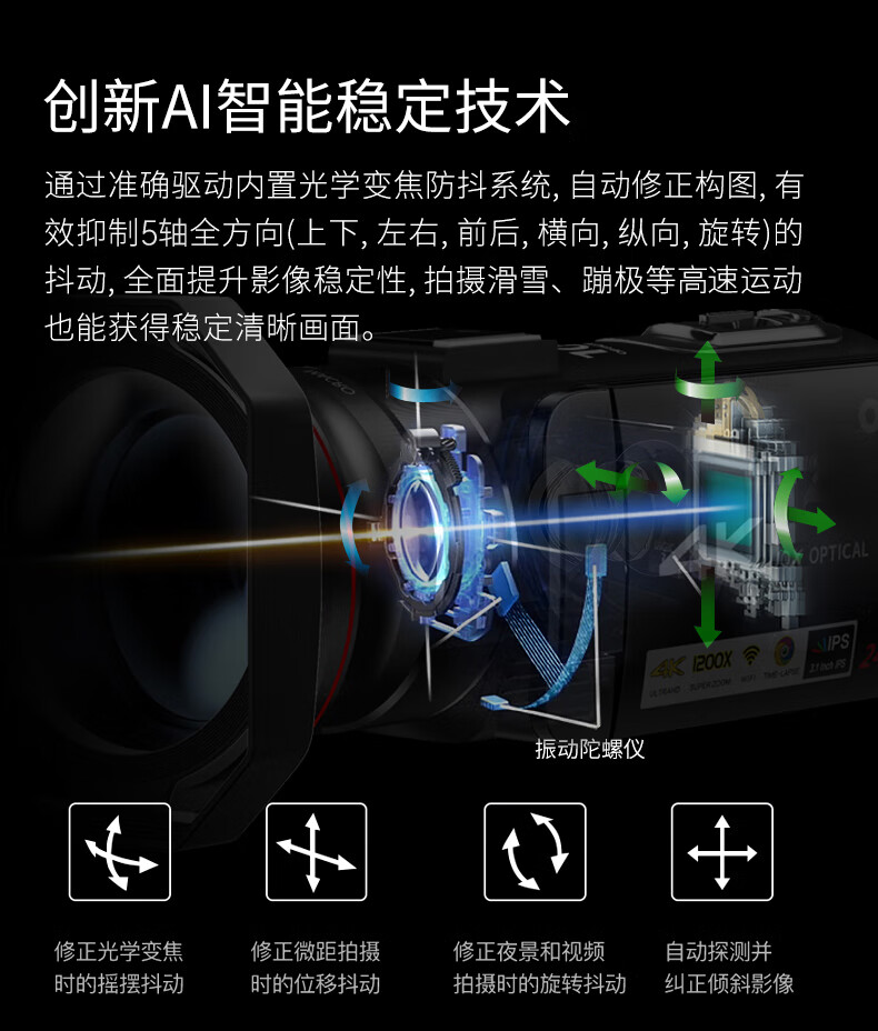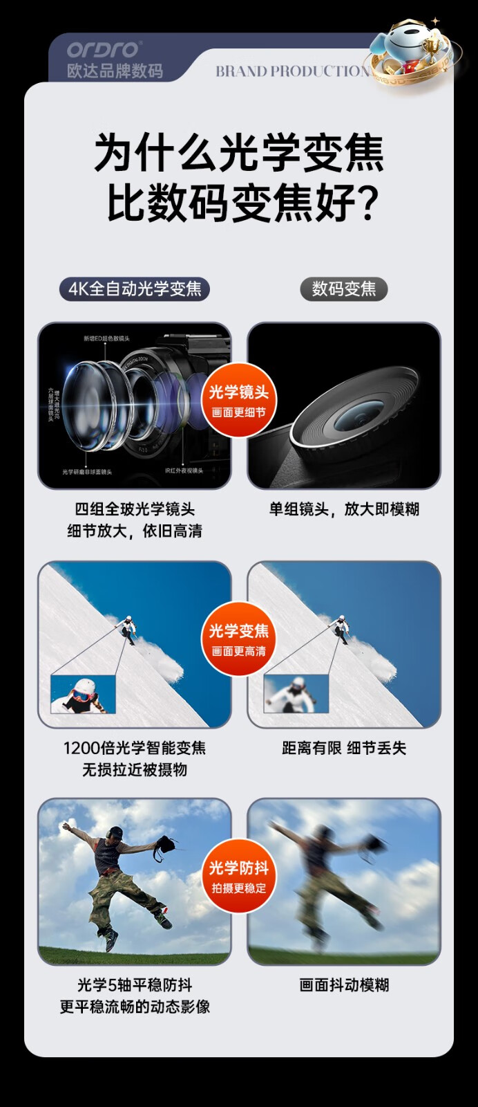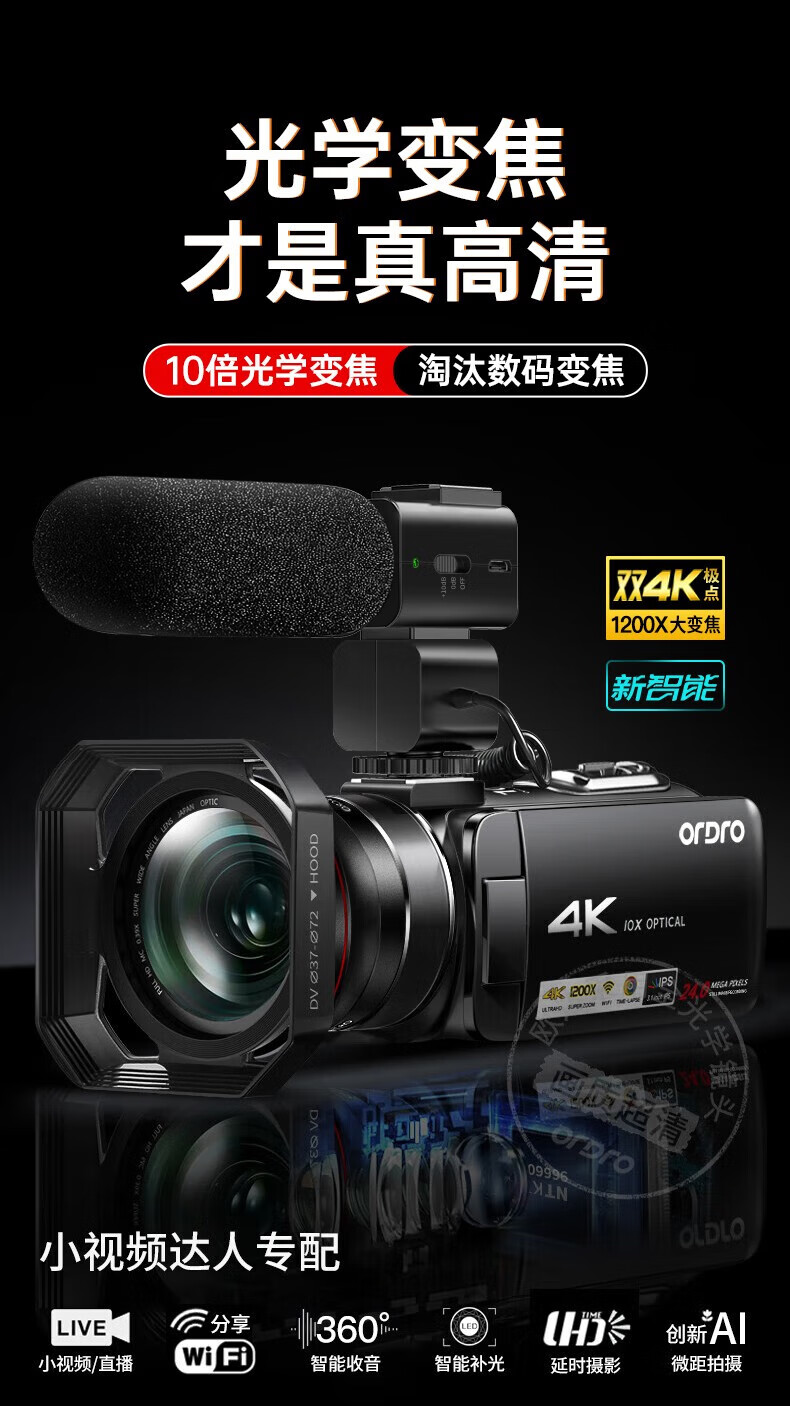 Ouda Optical Zoom HD 4K Camera Professional Light Variable Digital DV Enhanced 6-Axis Anti-Shake 1200x Dynamic Zoom Home Wedding Small Video Live Broadcast Deluxe Edition AC7