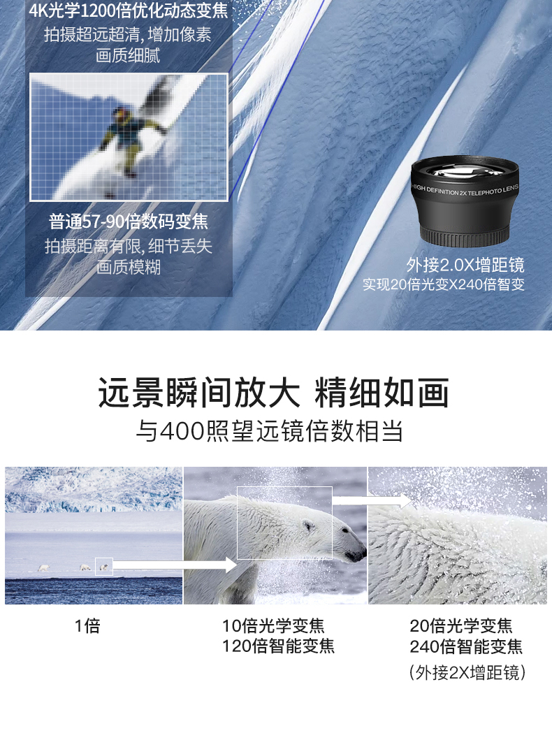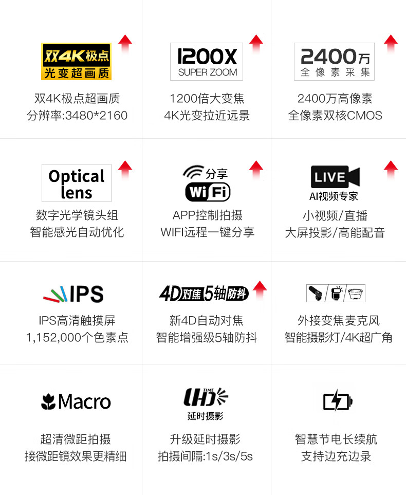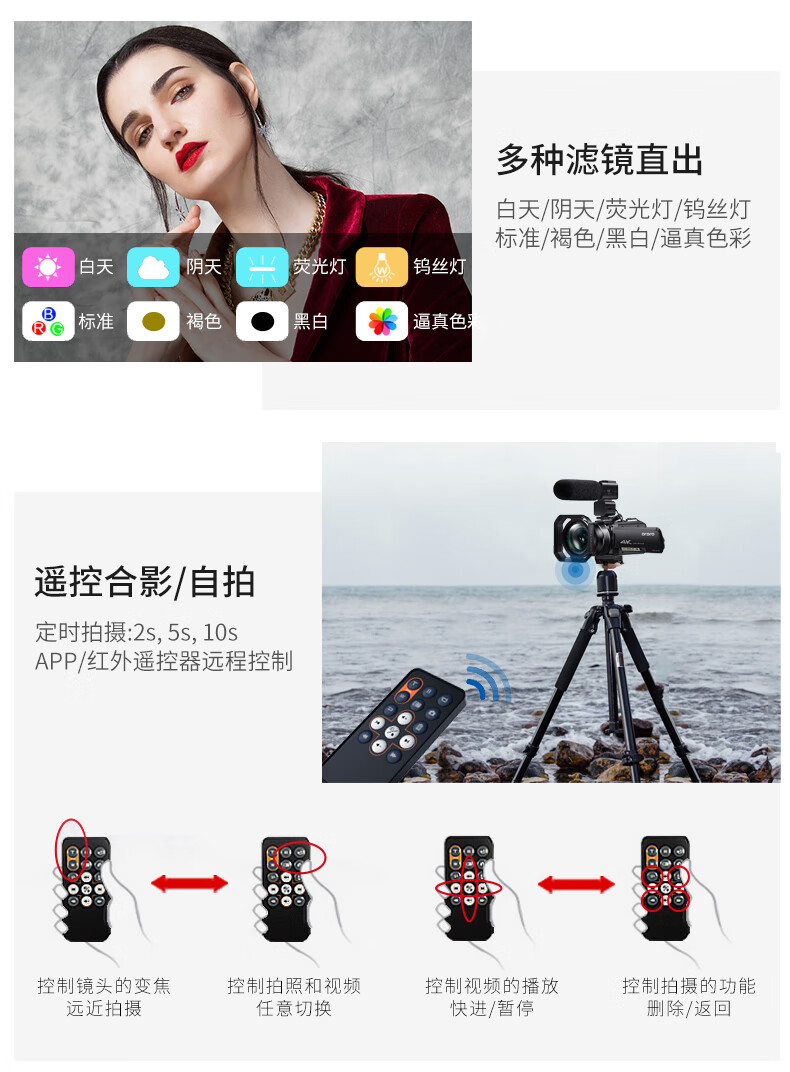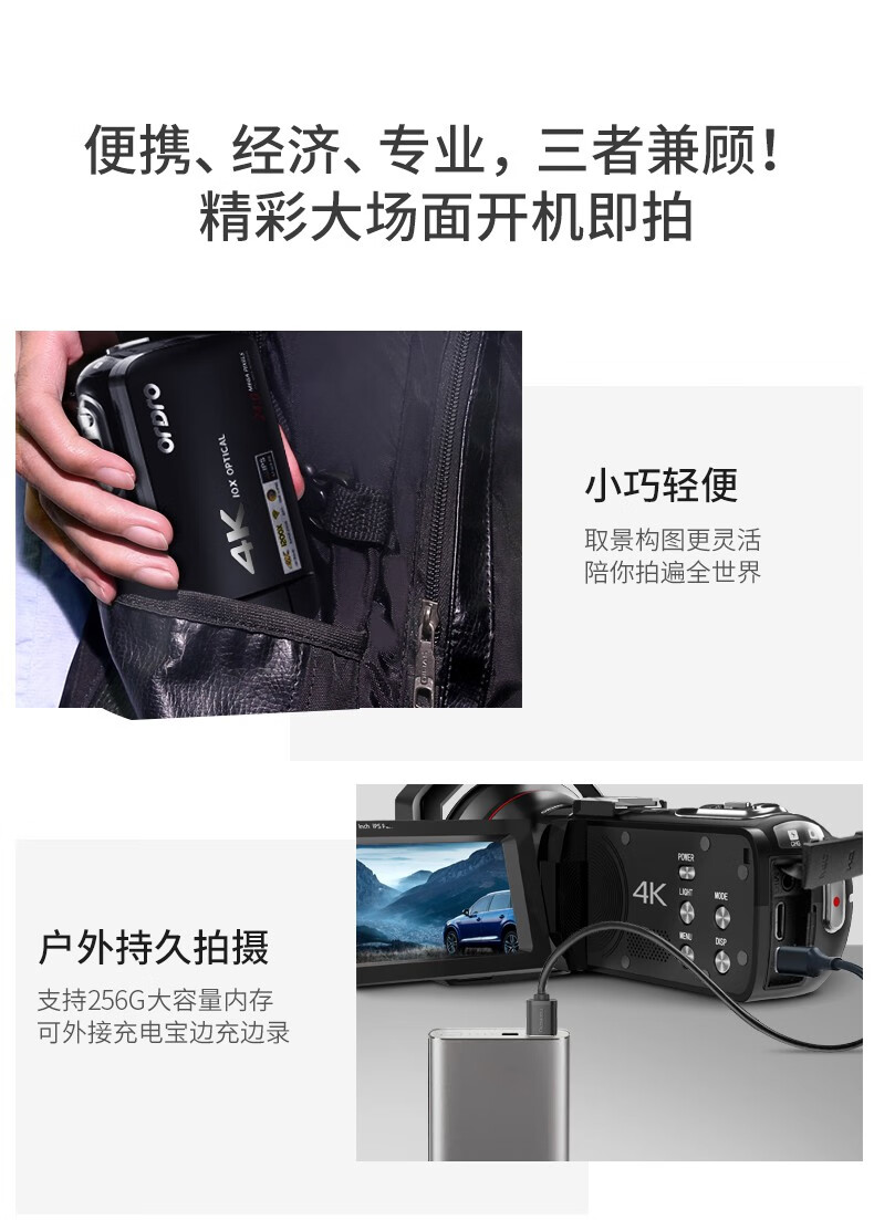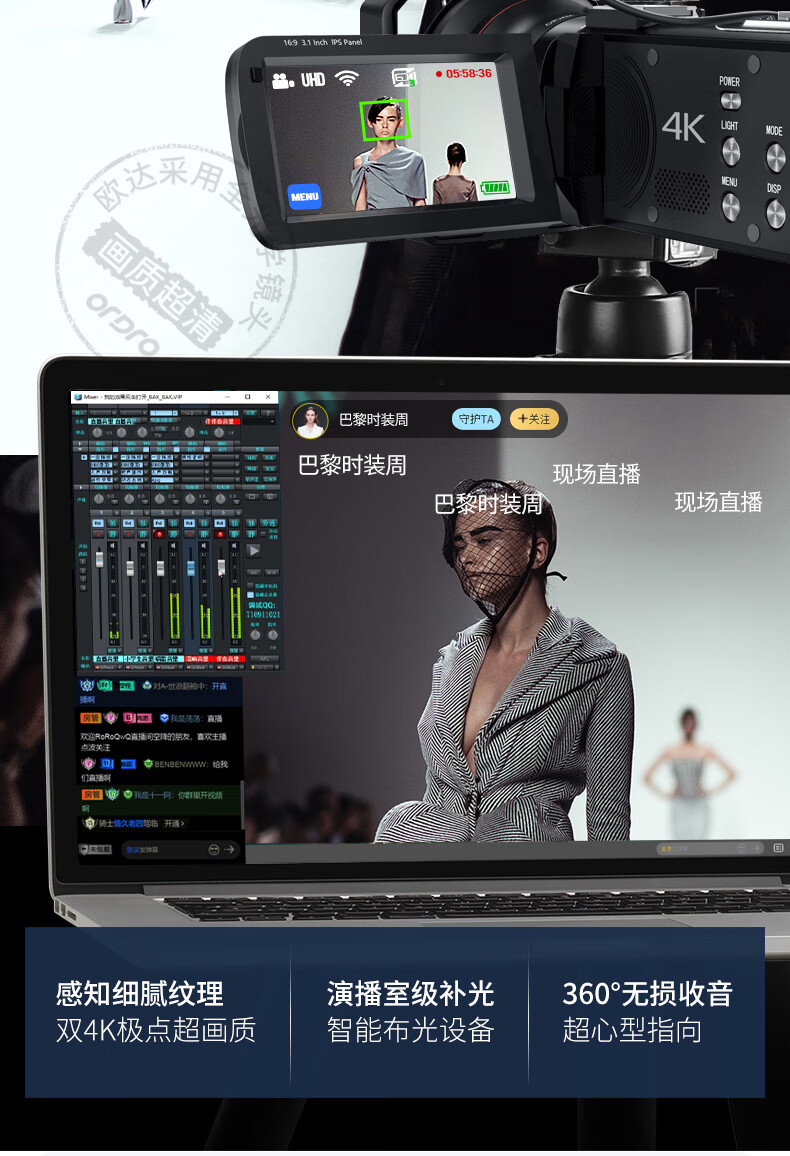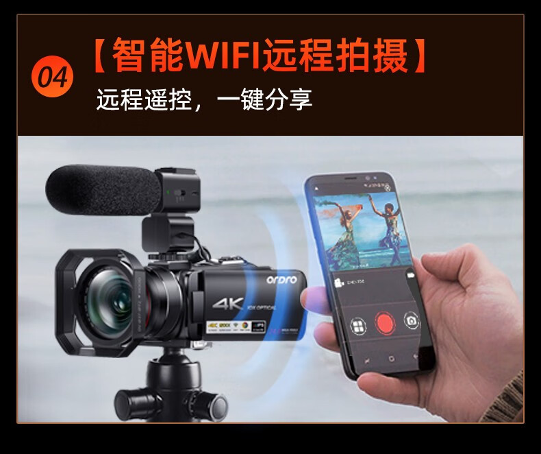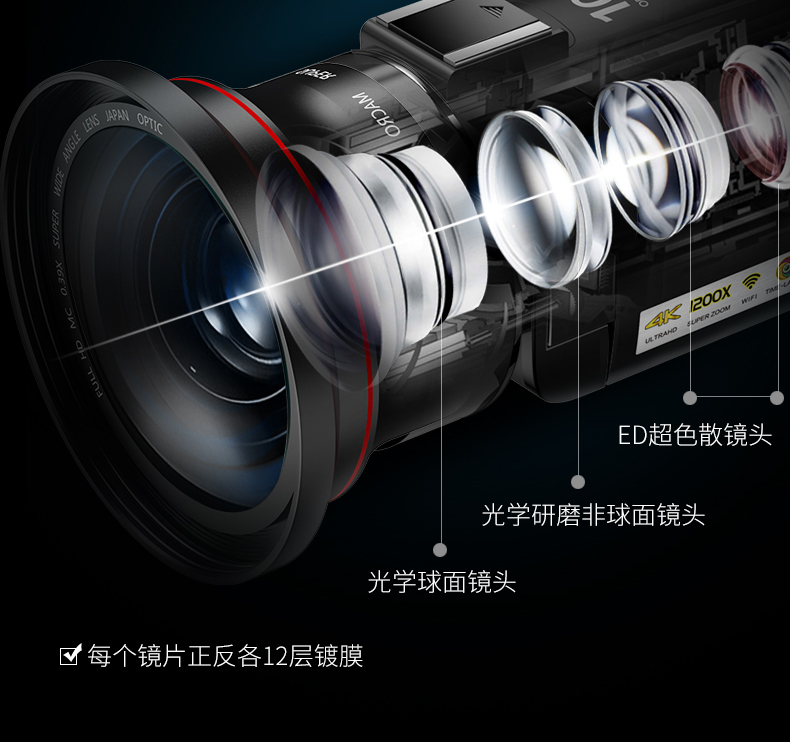 Ouda Optical Zoom HD 4K Camera Professional Light Variable Digital DV Enhanced 6-Axis Anti-Shake 1200x Dynamic Zoom Home Wedding Small Video Live Broadcast Deluxe Edition AC7