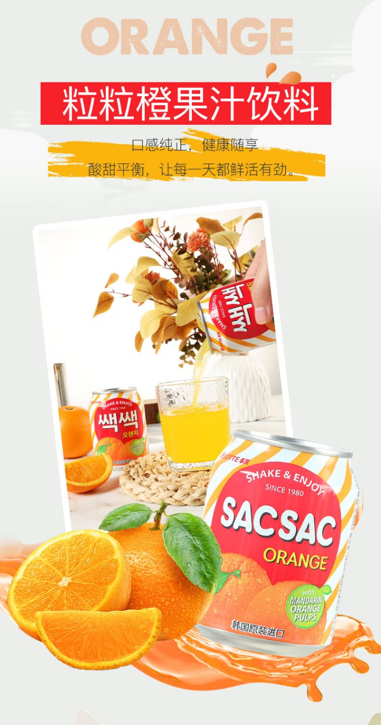 LOTTE orange juice drink 238ml*12 cans imported from Korea