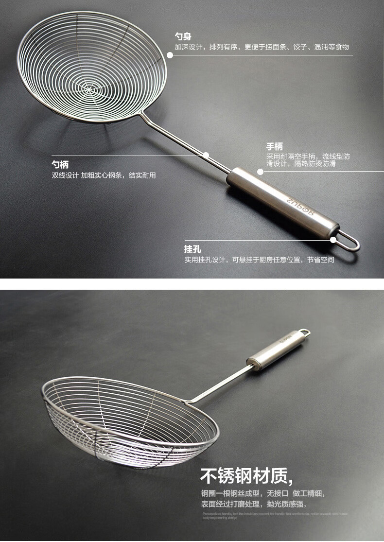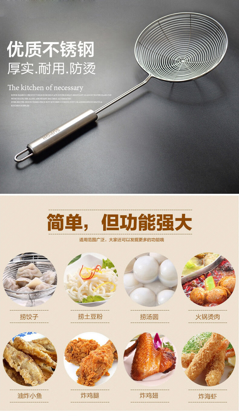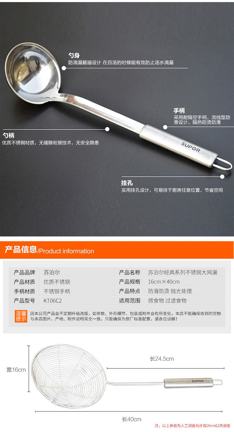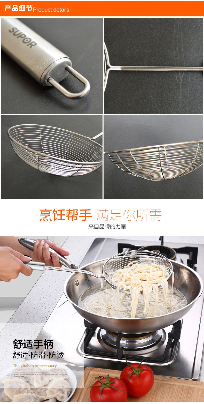 SUPOR stainless steel large mesh colander, soup spoon, spatula, strainer spoon, large mesh scoop, large mesh kitchen cooking tool KT06C2-large mesh drain