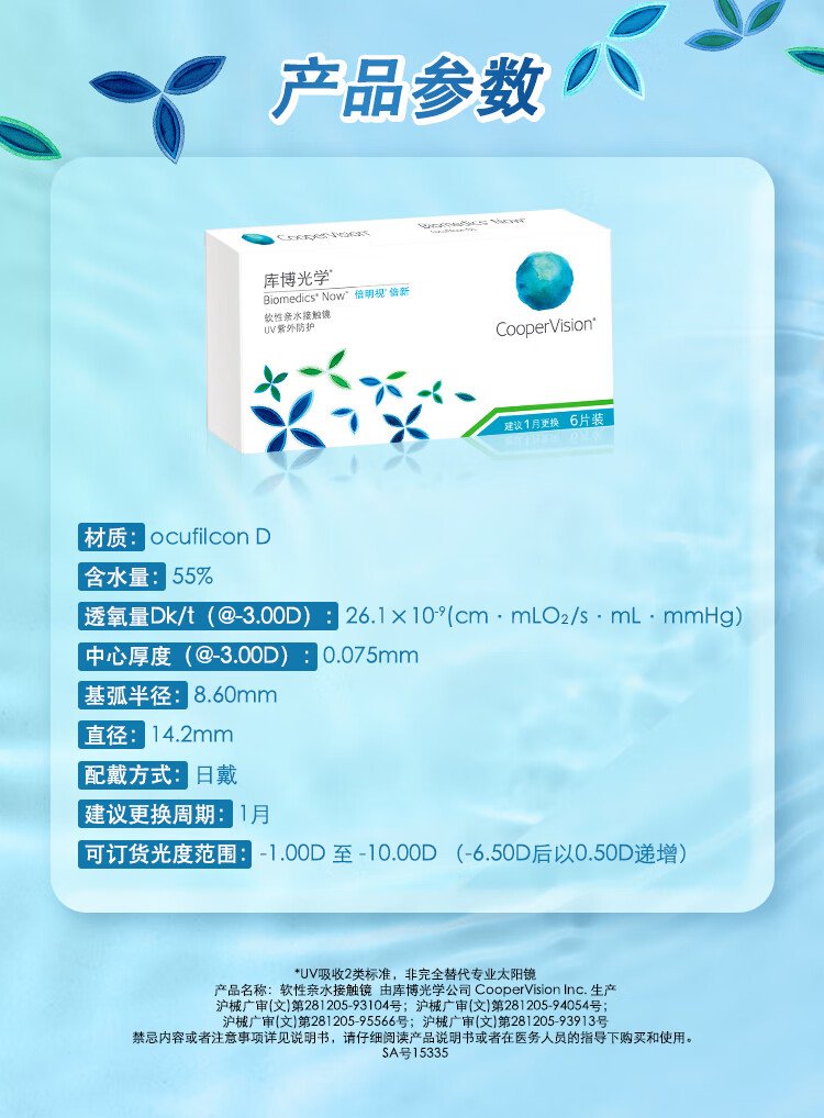 Coopervision times new imported transparent contact lenses monthly disposable 6 pieces 500 degrees