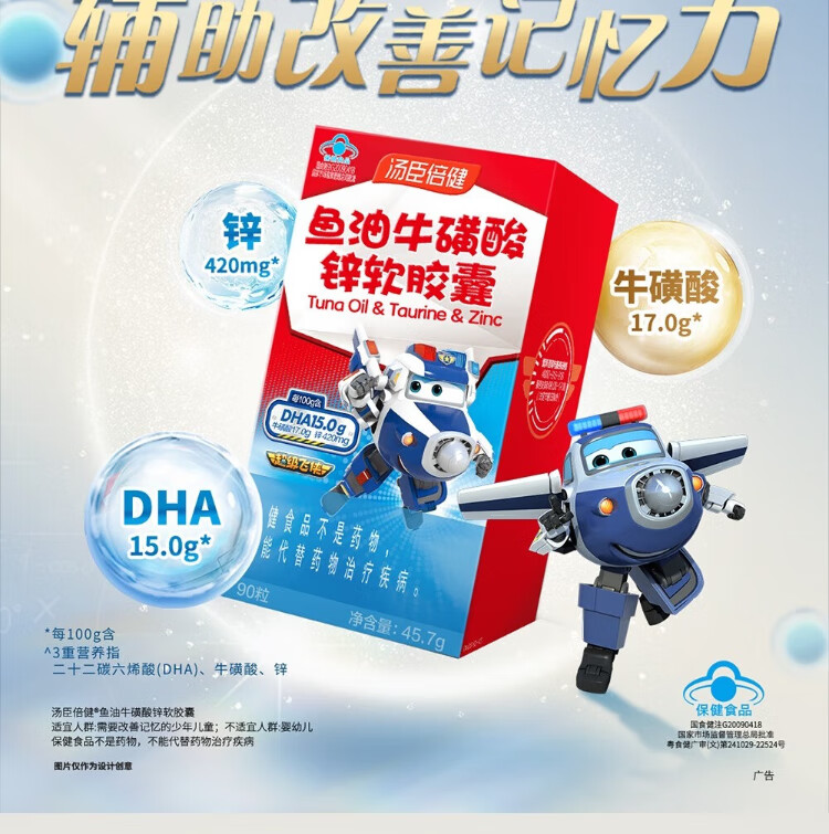 Tomson By-Health Fish Oil Zinc Taurate Soft Capsules 90 capsules DHA Zinc Taurate helps improve memory