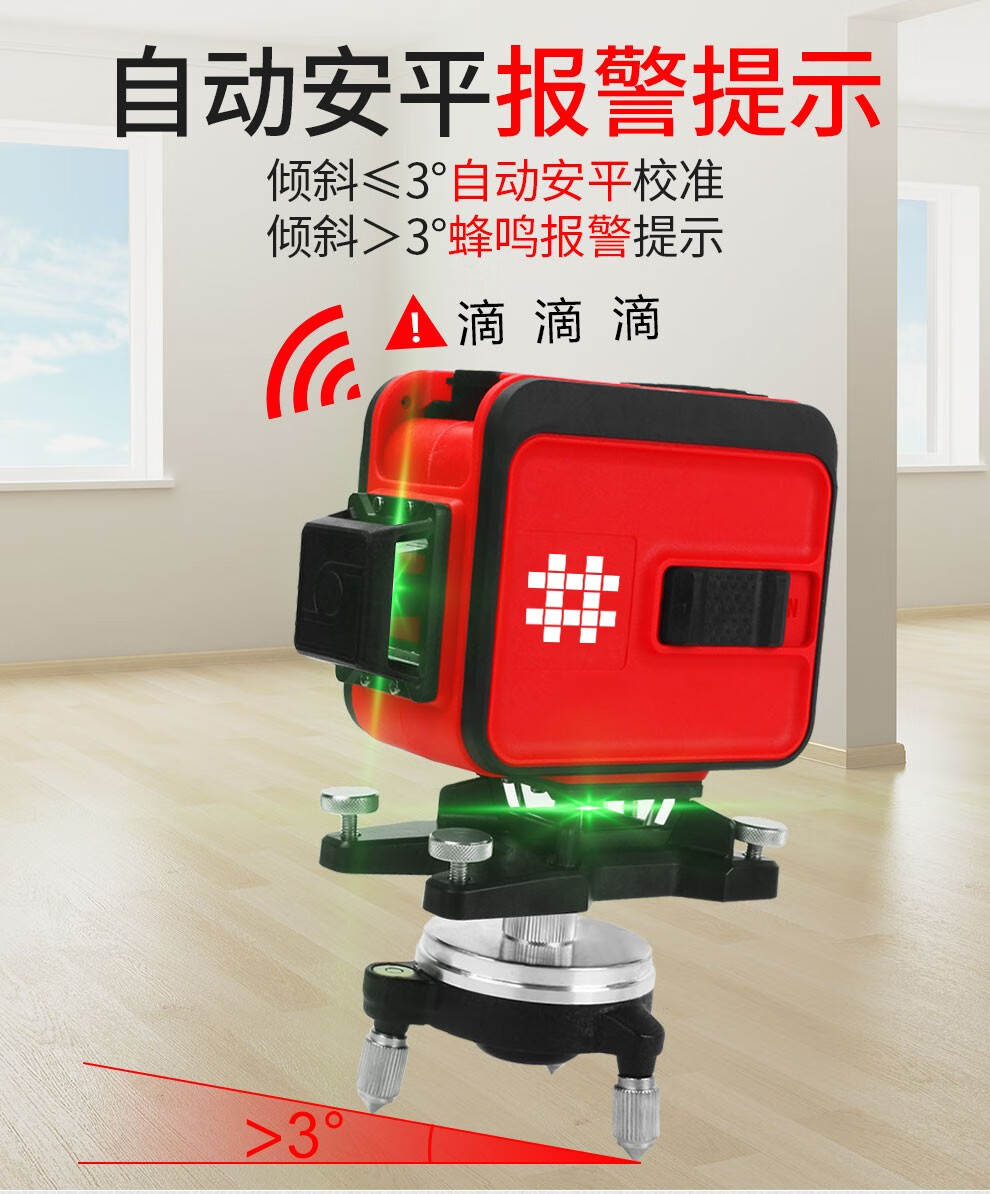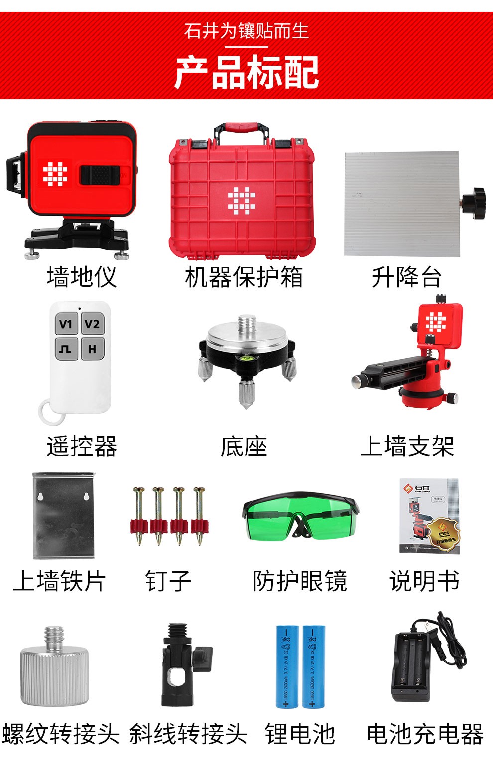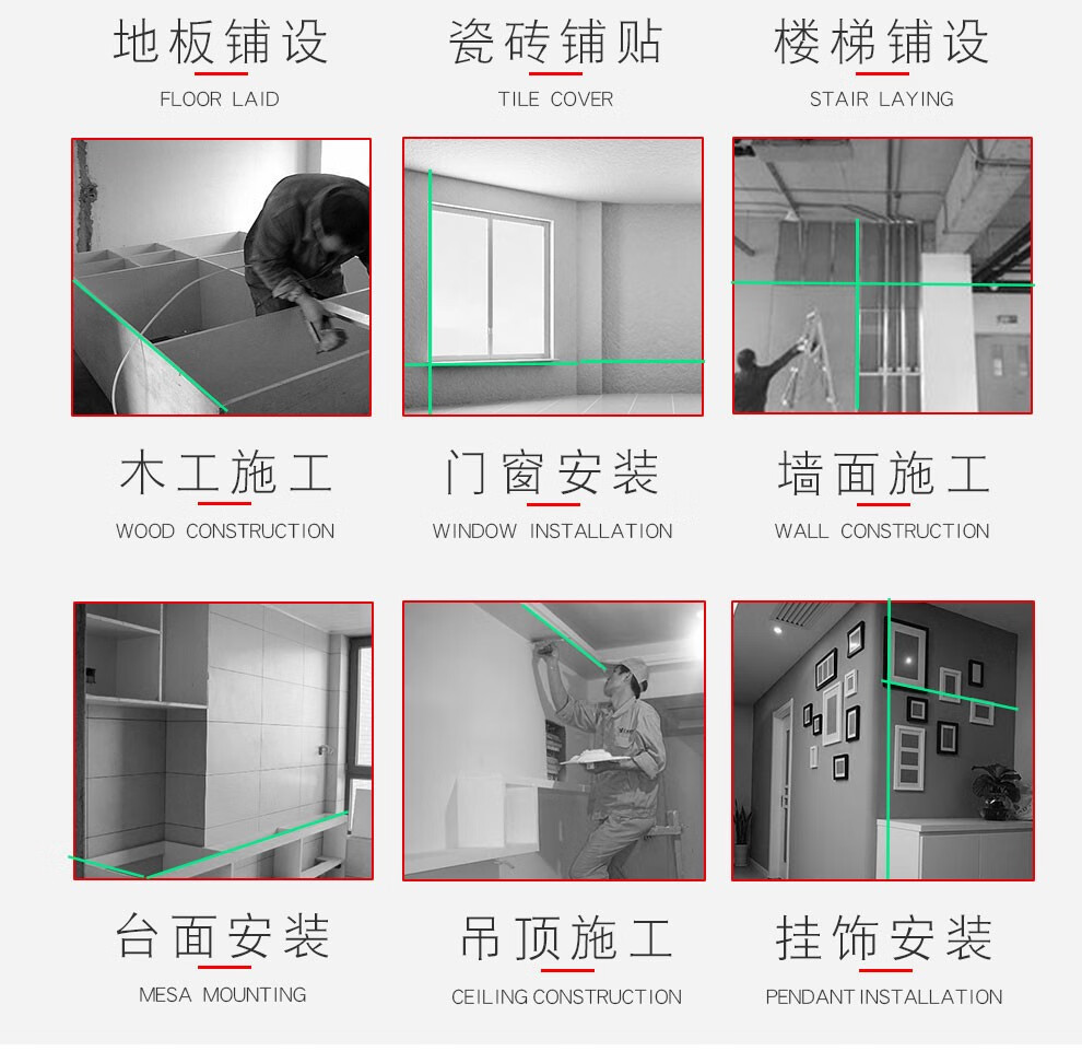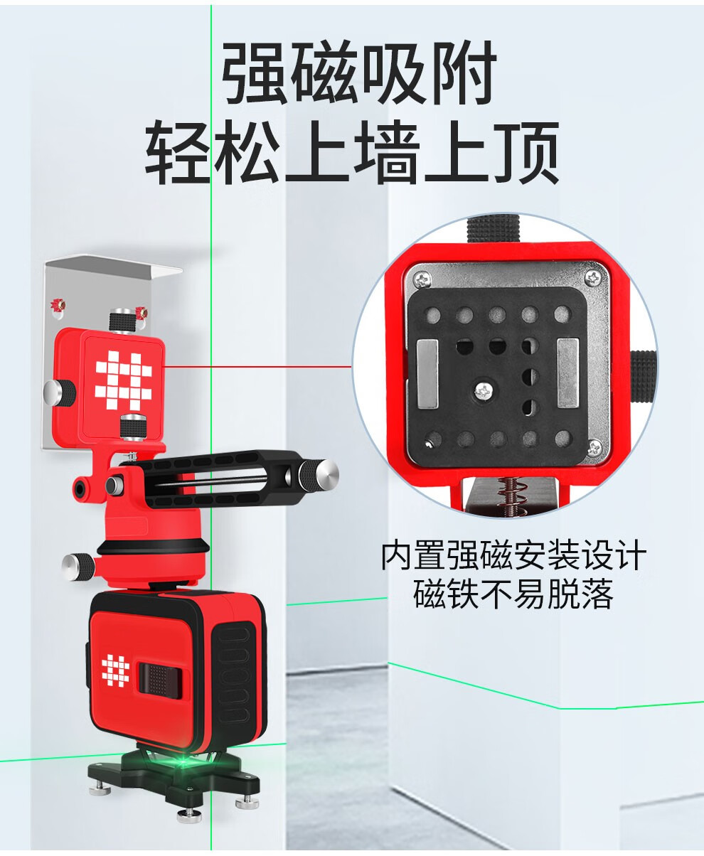 Shijing (SHIJING) green light 12-line wall-to-floor integrated level meter, dual-purpose wall-mounted meter, green light 12-line infrared level meter, 12-line super green light 7269 floor and wall meter standard