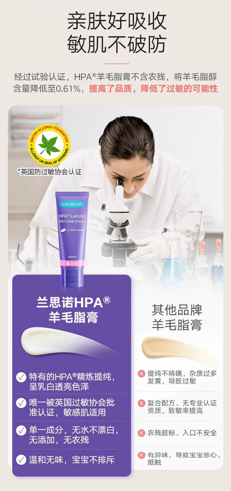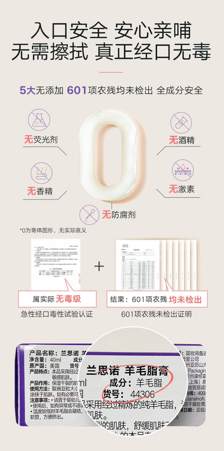 LANSINOH Nipple Cream Lanolin Cream Pregnant Women Nipple Cream Breastfeeding Cracked Moisturizing Lanolin Cream 40ml