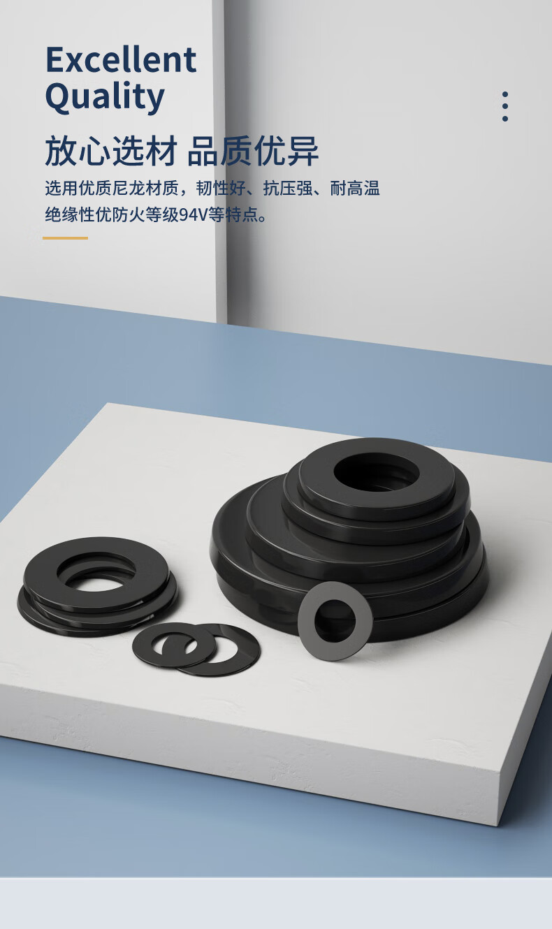 Guwanji black enlarged nylon flat gasket thin round gasket ultra-thin nylon flat gasket plastic insulation high temperature resistant gasket M5*10*1 (100 pieces)