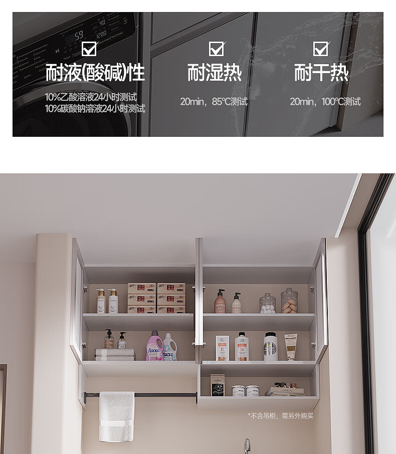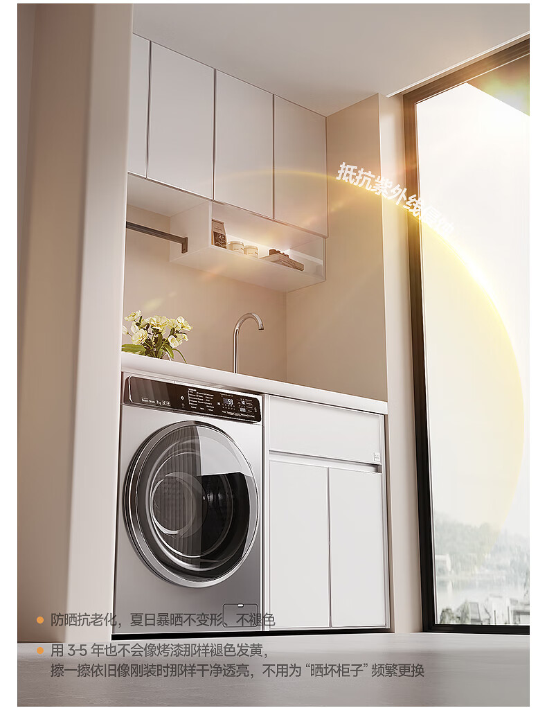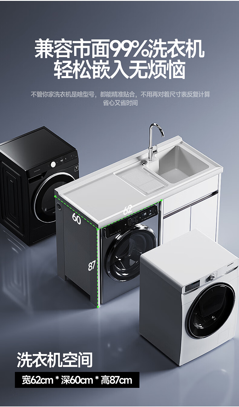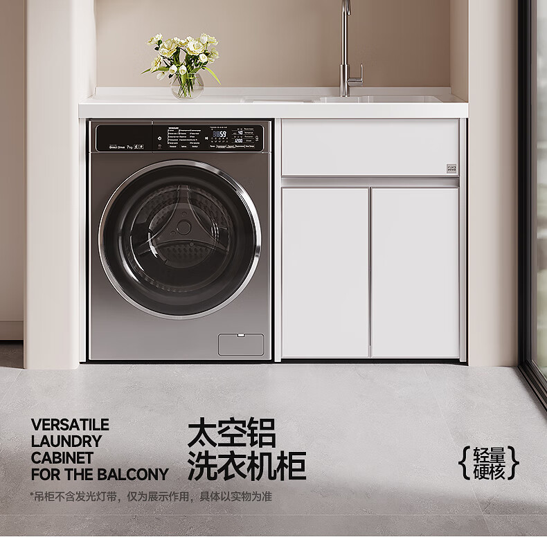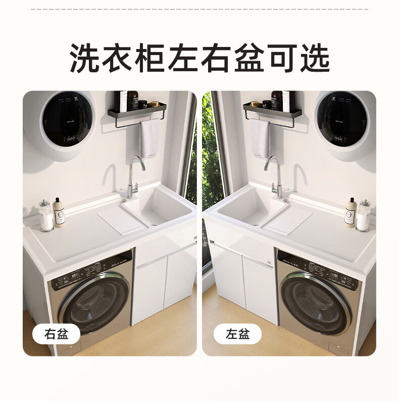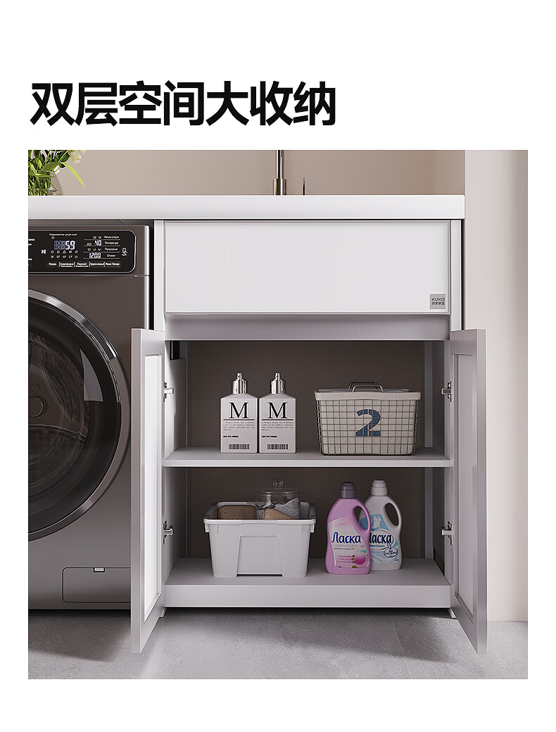KUKA Washing Machine Integrated Cabinet Companion Basin Balcony Washing Machine Cabinet Space Aluminum Laundry Cabinet G-07401 120cm | Light luxury gray left basin | Right basin, please contact customer service