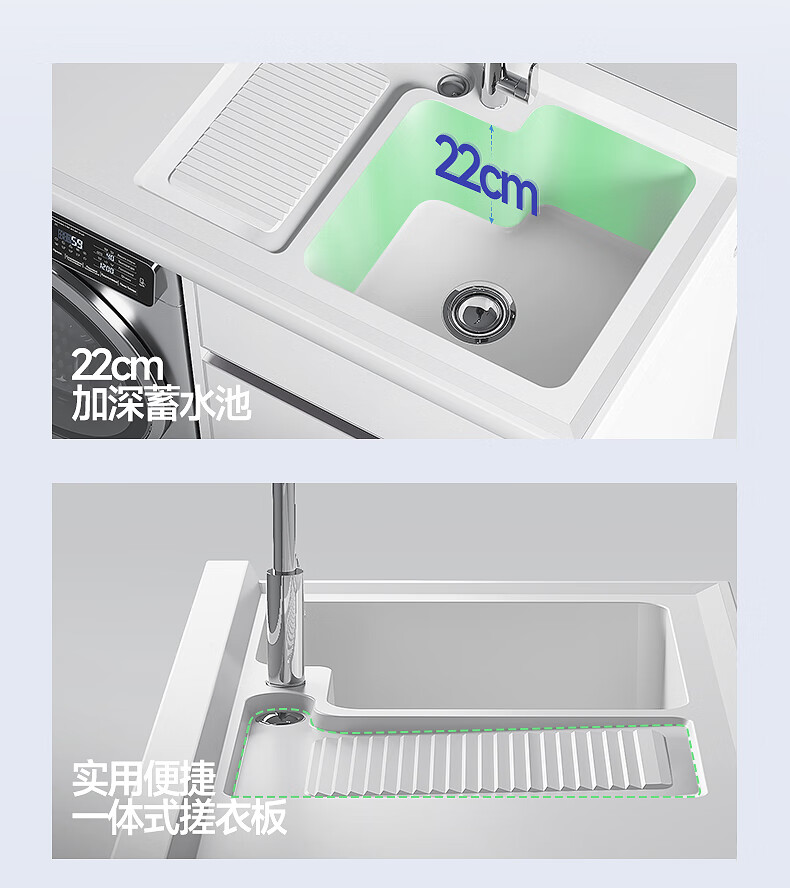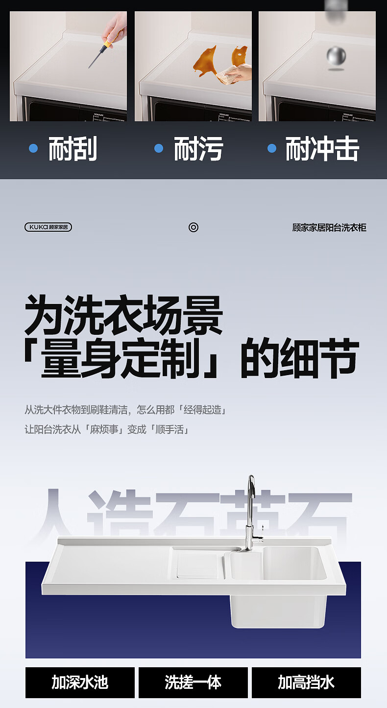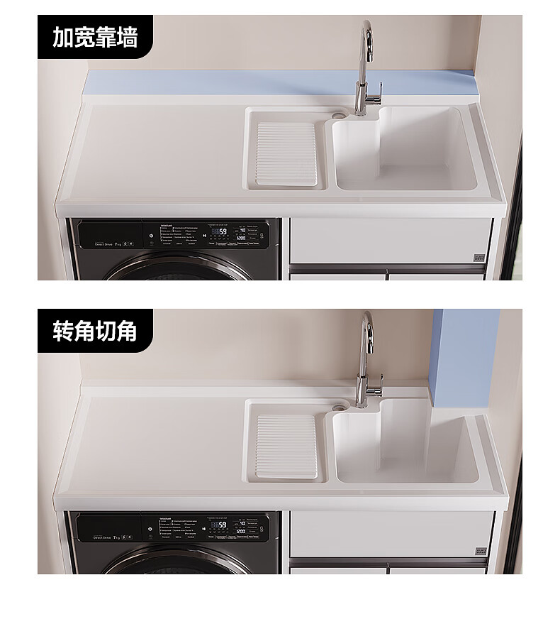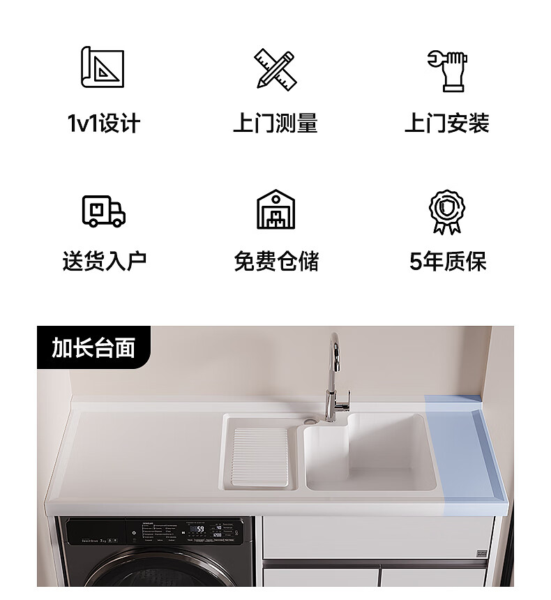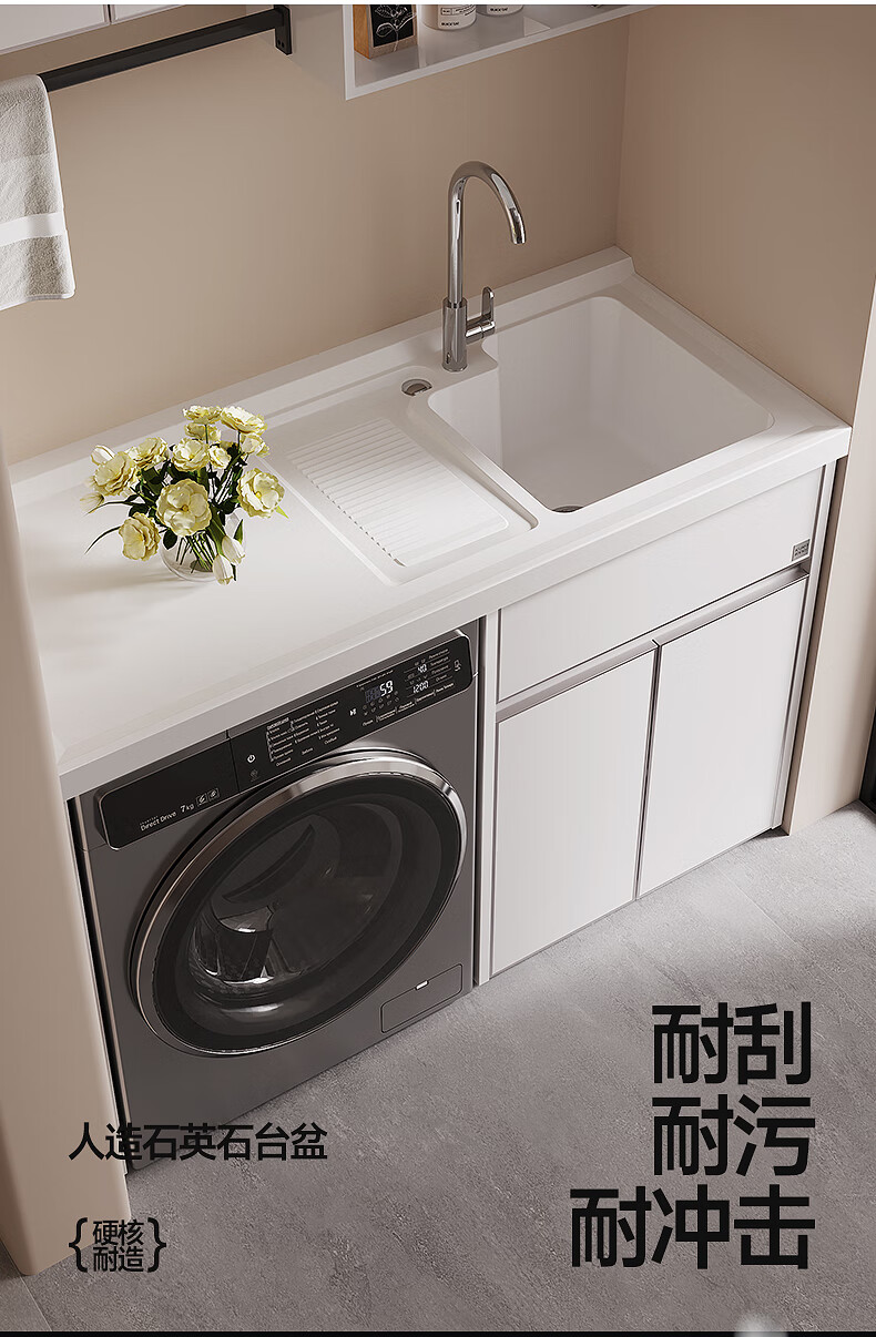KUKA Washing Machine Integrated Cabinet Companion Basin Balcony Washing Machine Cabinet Space Aluminum Laundry Cabinet G-07401 120cm | Light luxury gray left basin | Right basin, please contact customer service