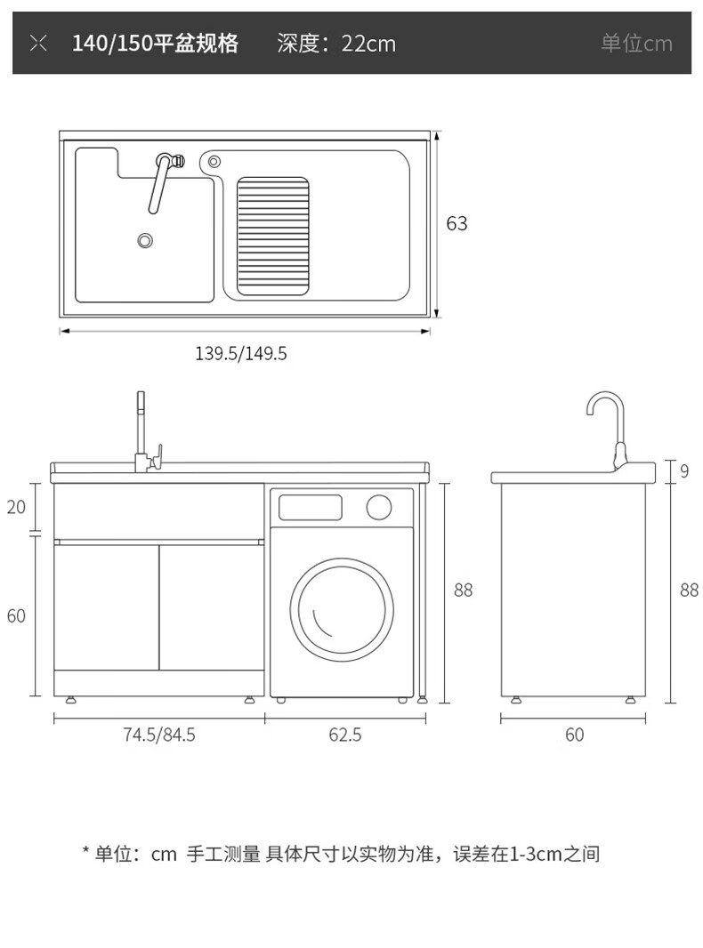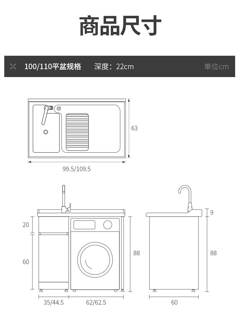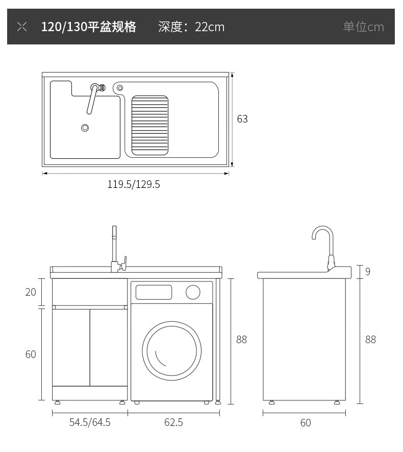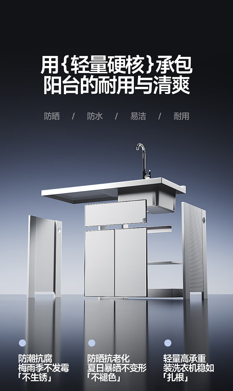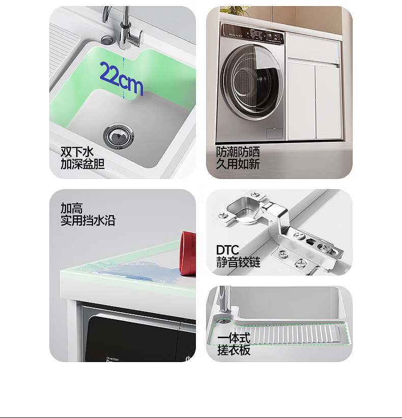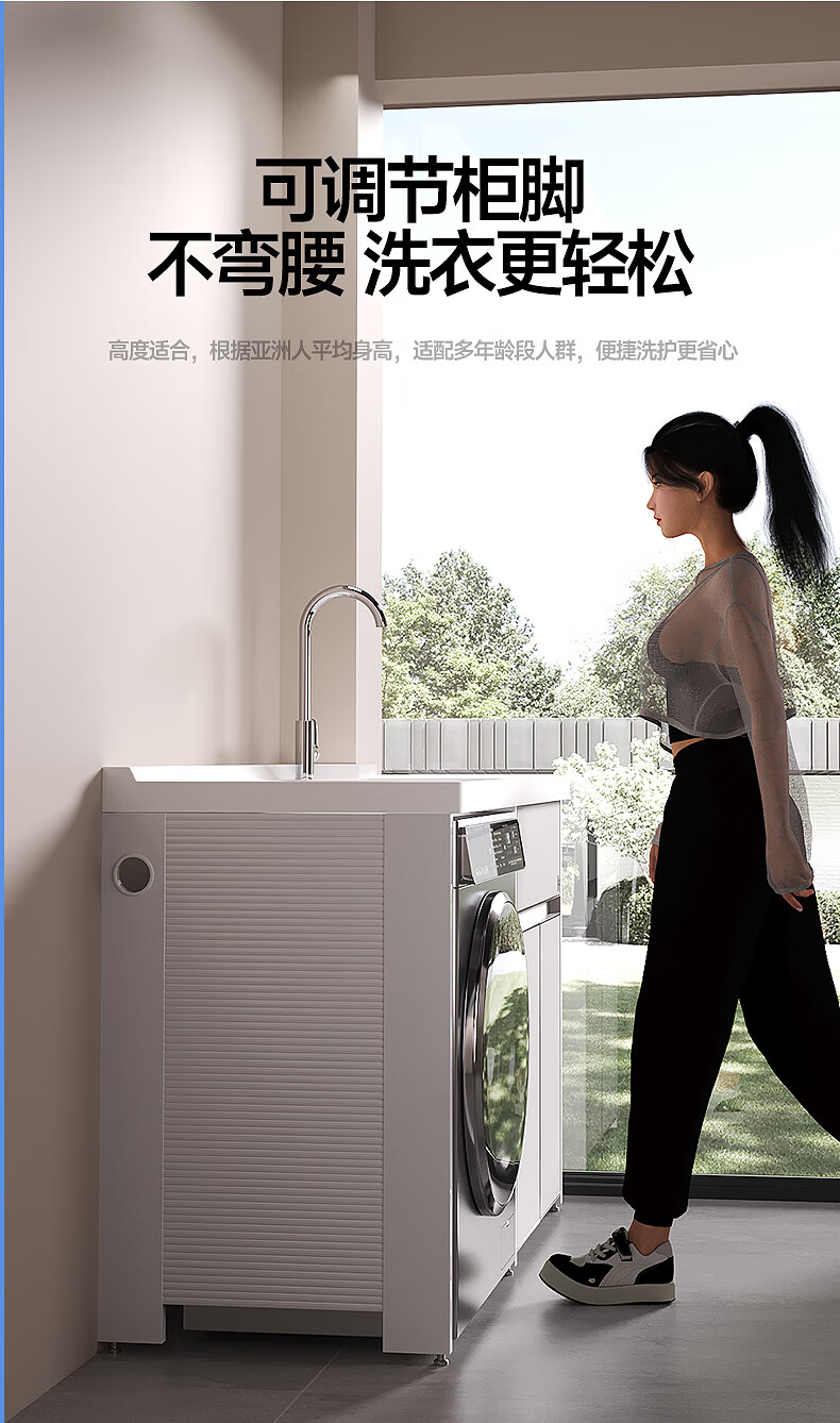 KUKA Washing Machine Integrated Cabinet Companion Basin Balcony Washing Machine Cabinet Space Aluminum Laundry Cabinet G-07401 120cm | Light luxury gray left basin | Right basin, please contact customer service