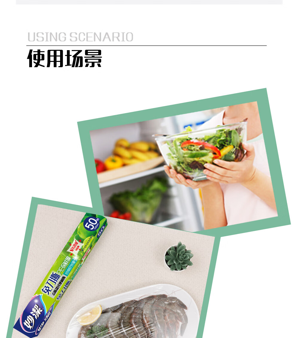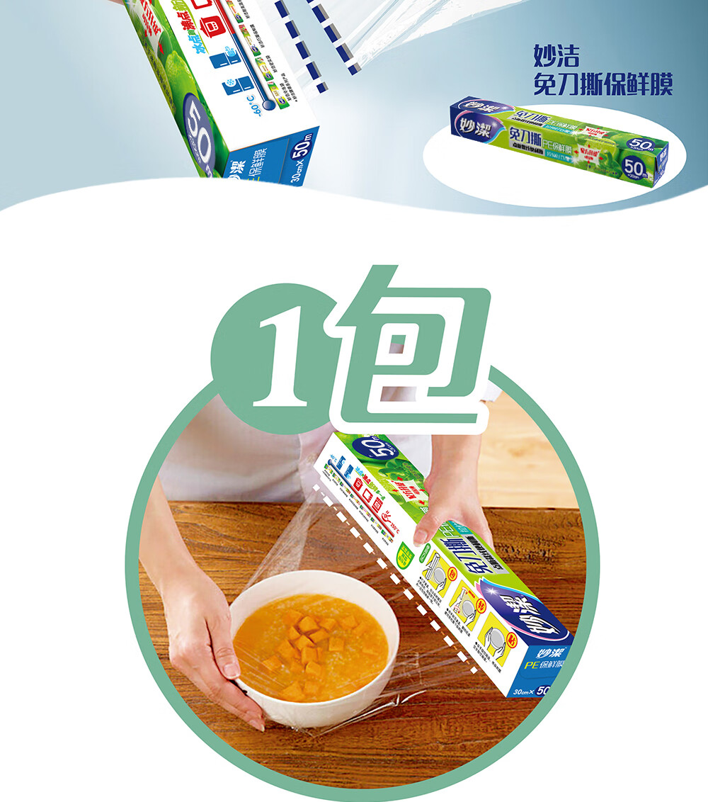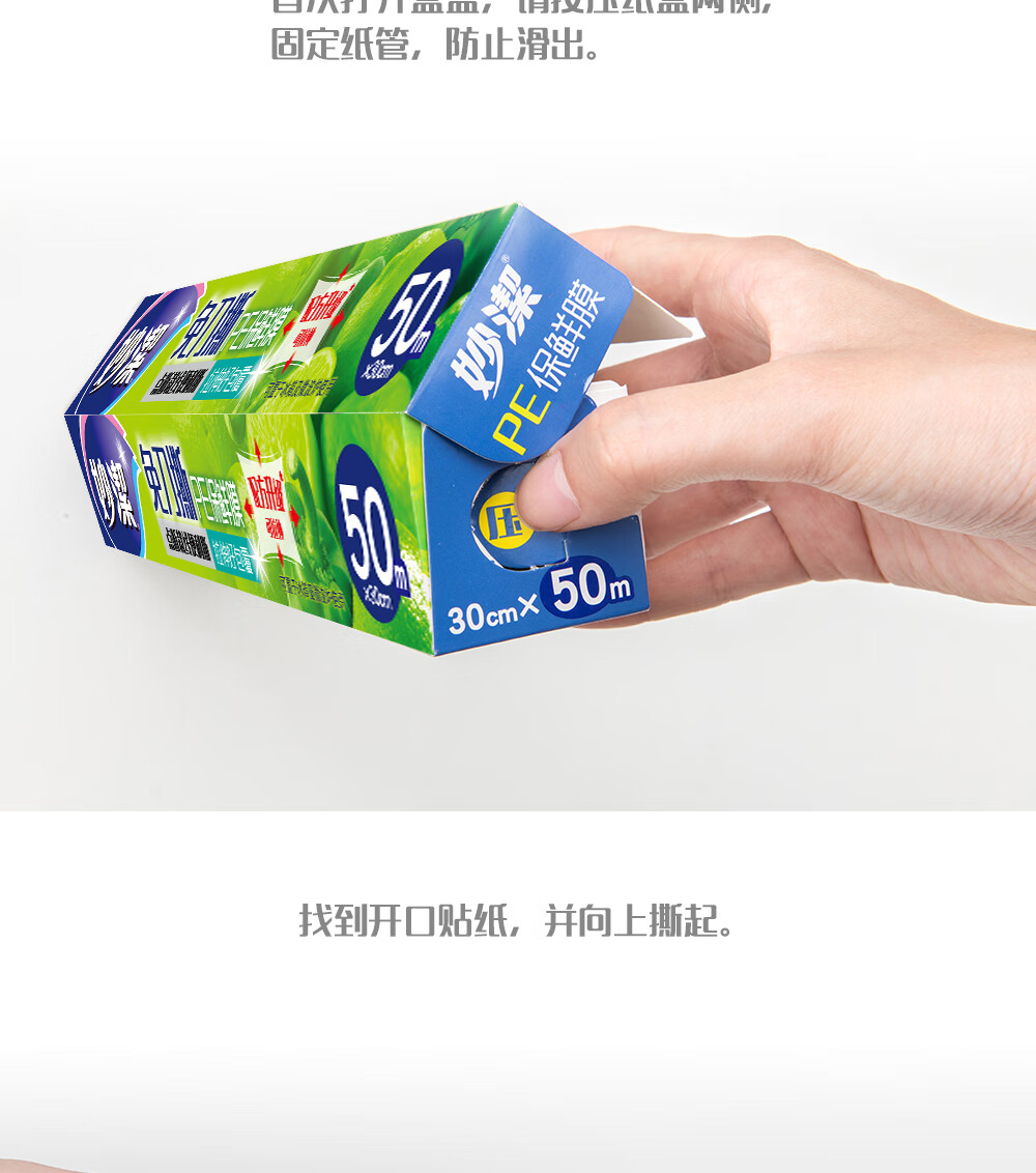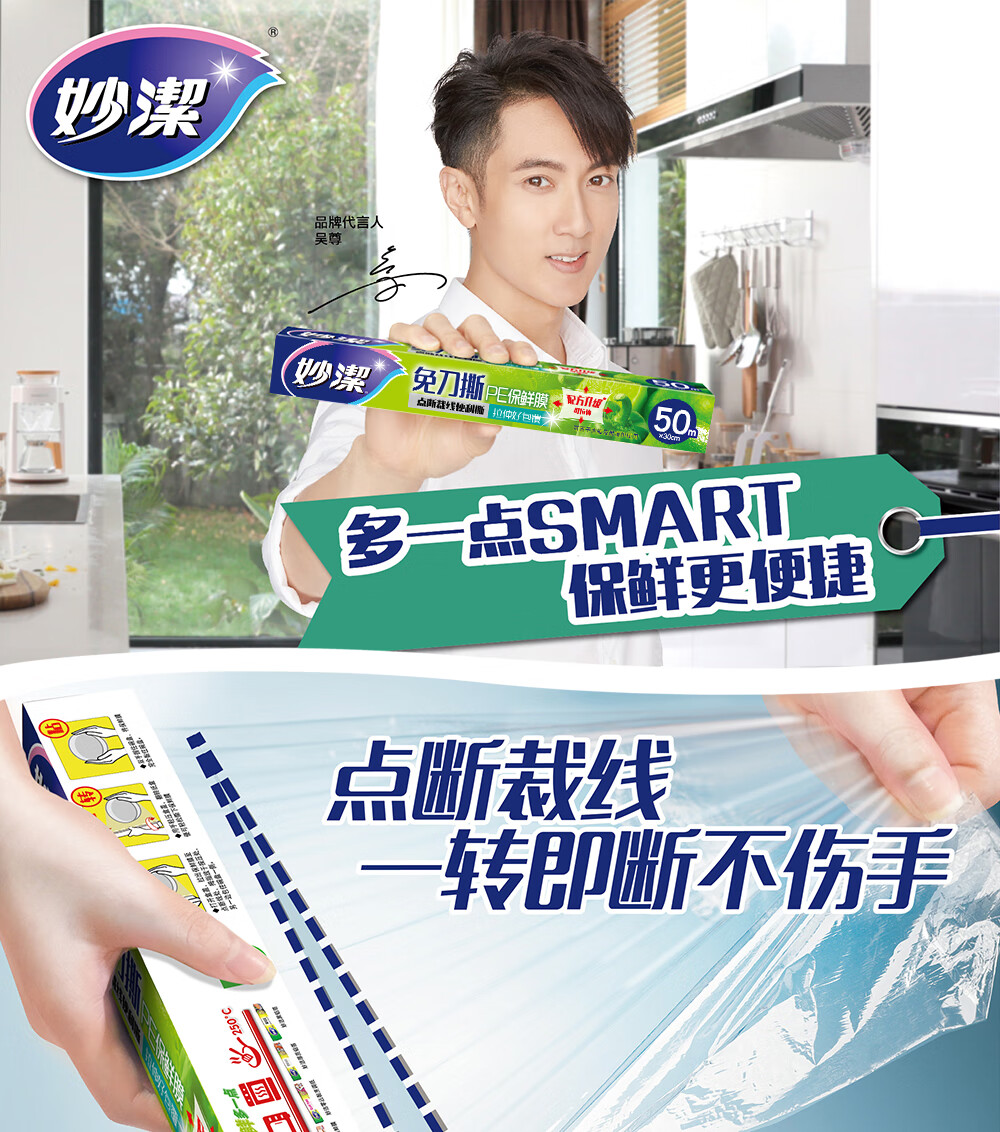 Miaojie Knife-free Tear-off Plastic Wrap Large Roll Point-Breaking Smart Tear-Off Microwaveable Household 50 Meter Large Box
