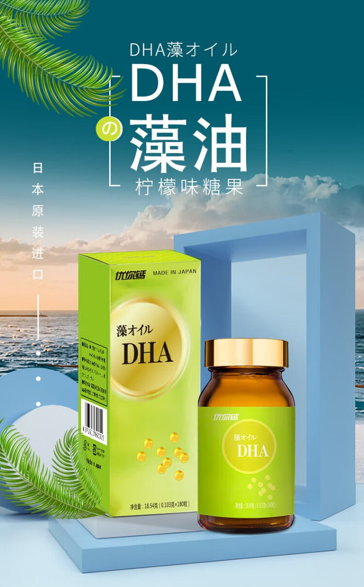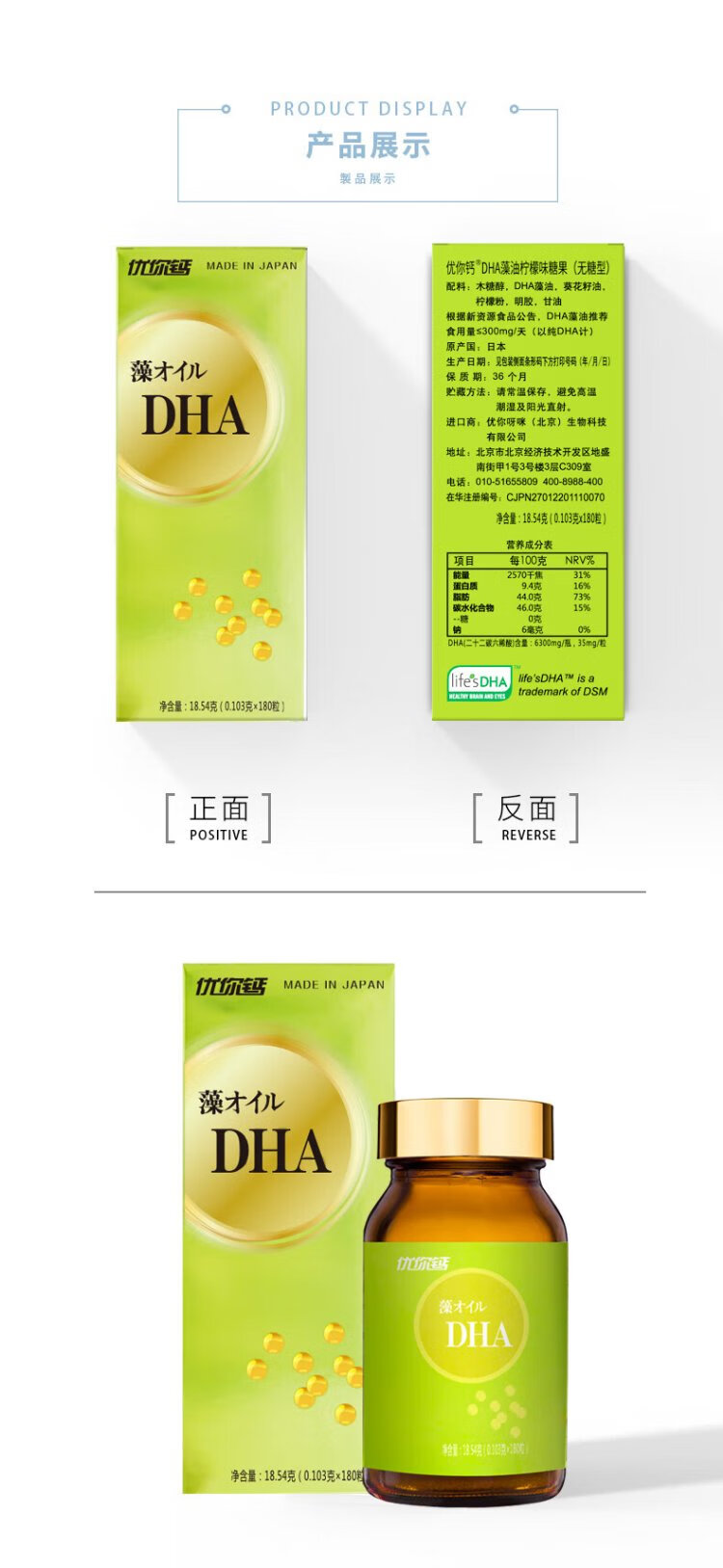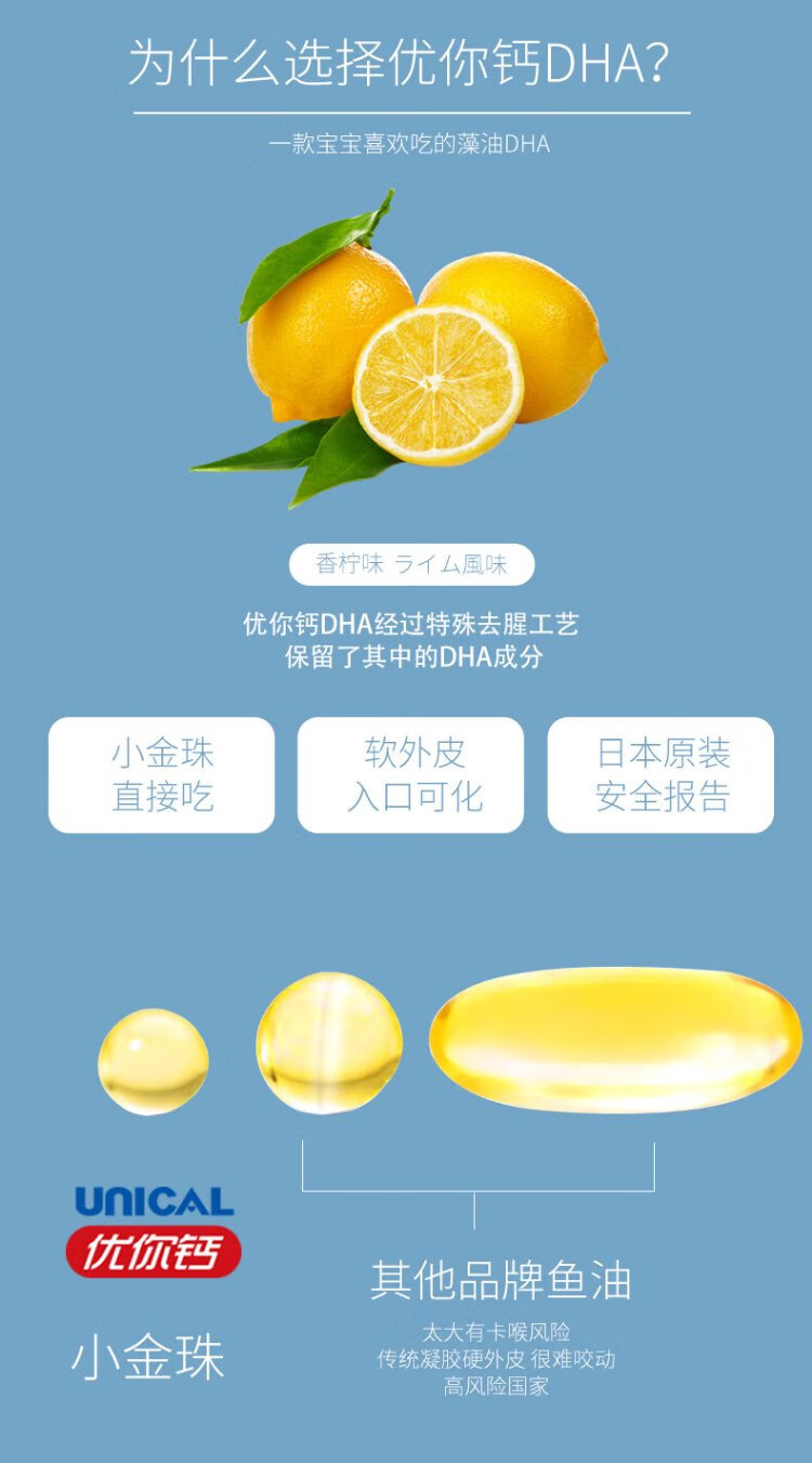 Imported from Japan, Youni Calcium DHA Algae Oil Lemon Flavor Candy Seamless Small Golden Beads Dutch DSM Algae Source Instantly Melts in the Mouth and Does Not Get Stuck in the Throat Lemon Flavor Food Grade All Ages