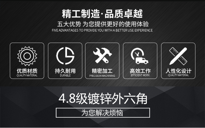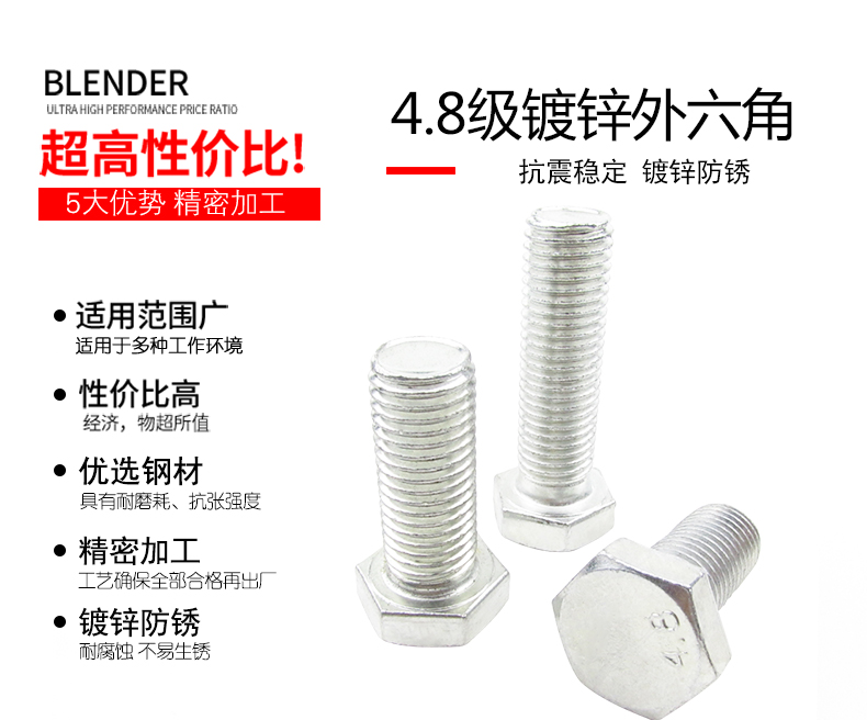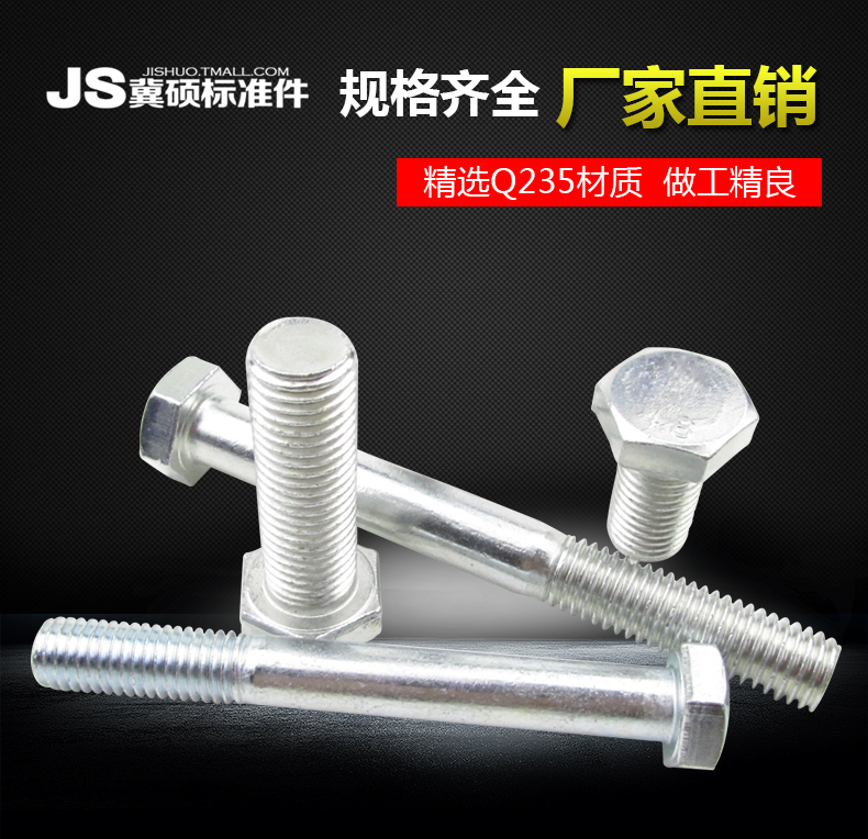 Jishuo GB30 national standard galvanized external hexagonal M18/20/22/24 bolt 4.8 grade galvanized hexagonal head screw M20*110