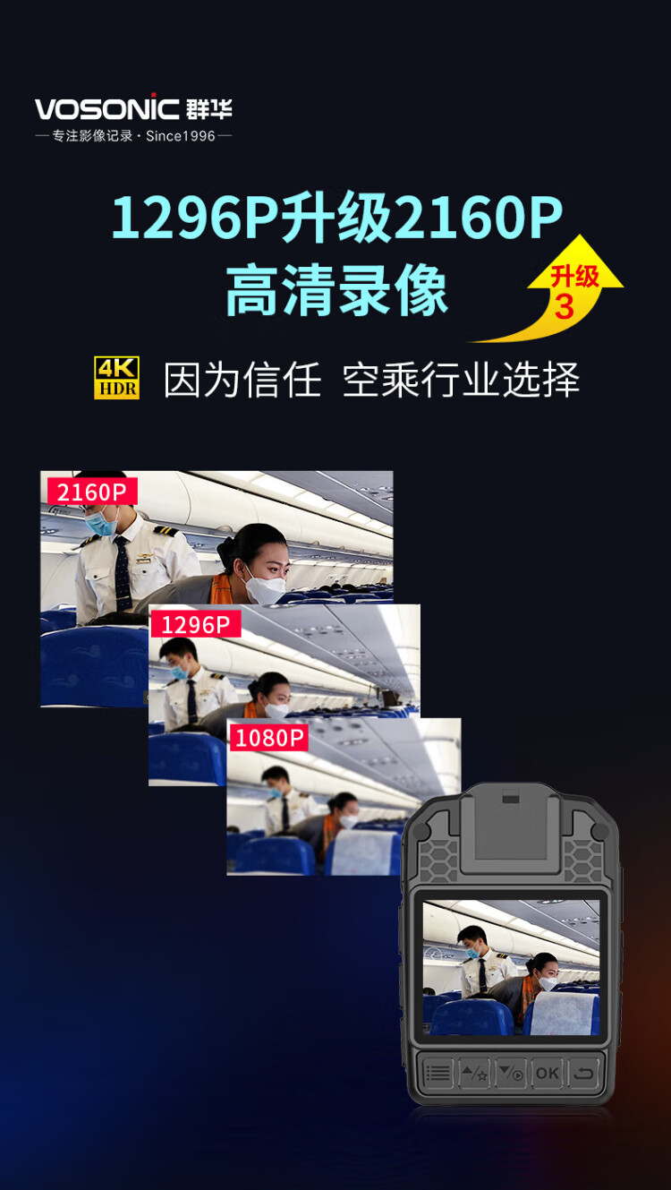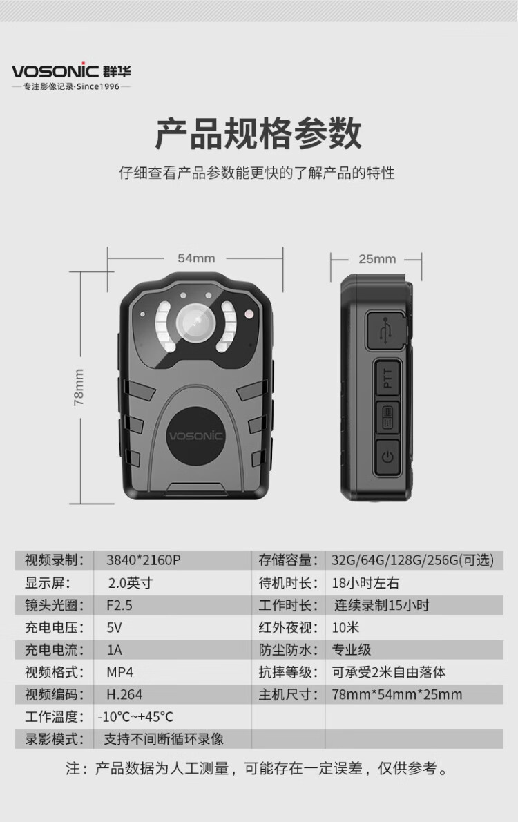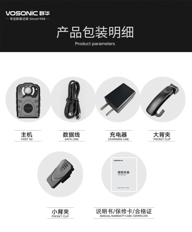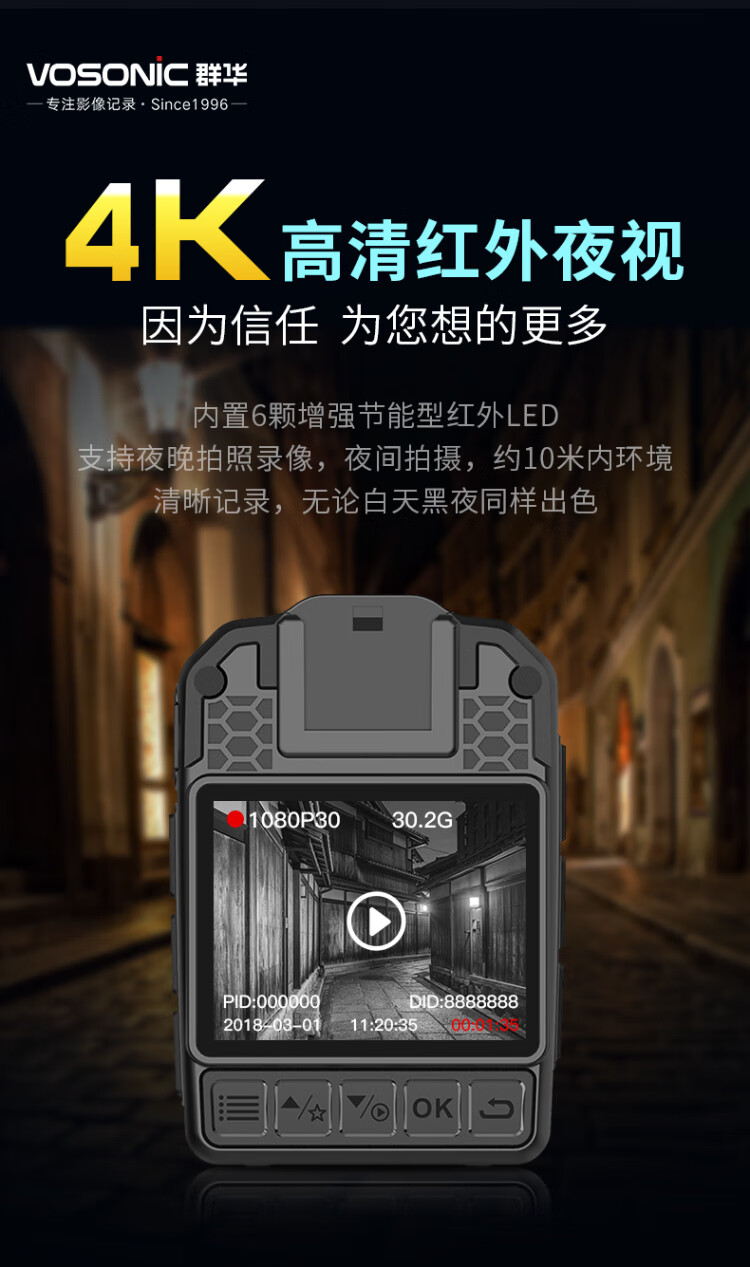 VOSONIC D2 64G 4K law enforcement recorder HD micro body-worn chest portable camera recorder