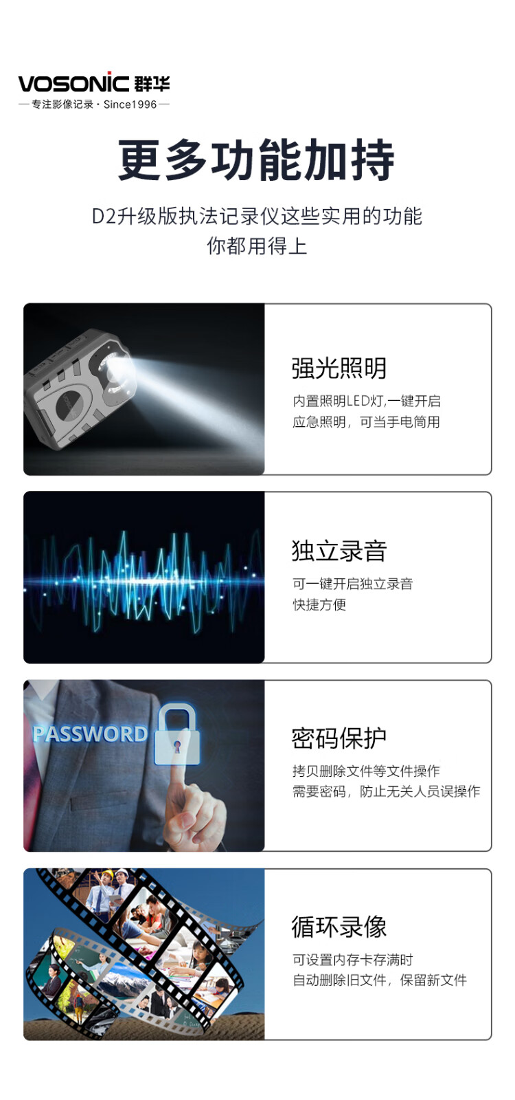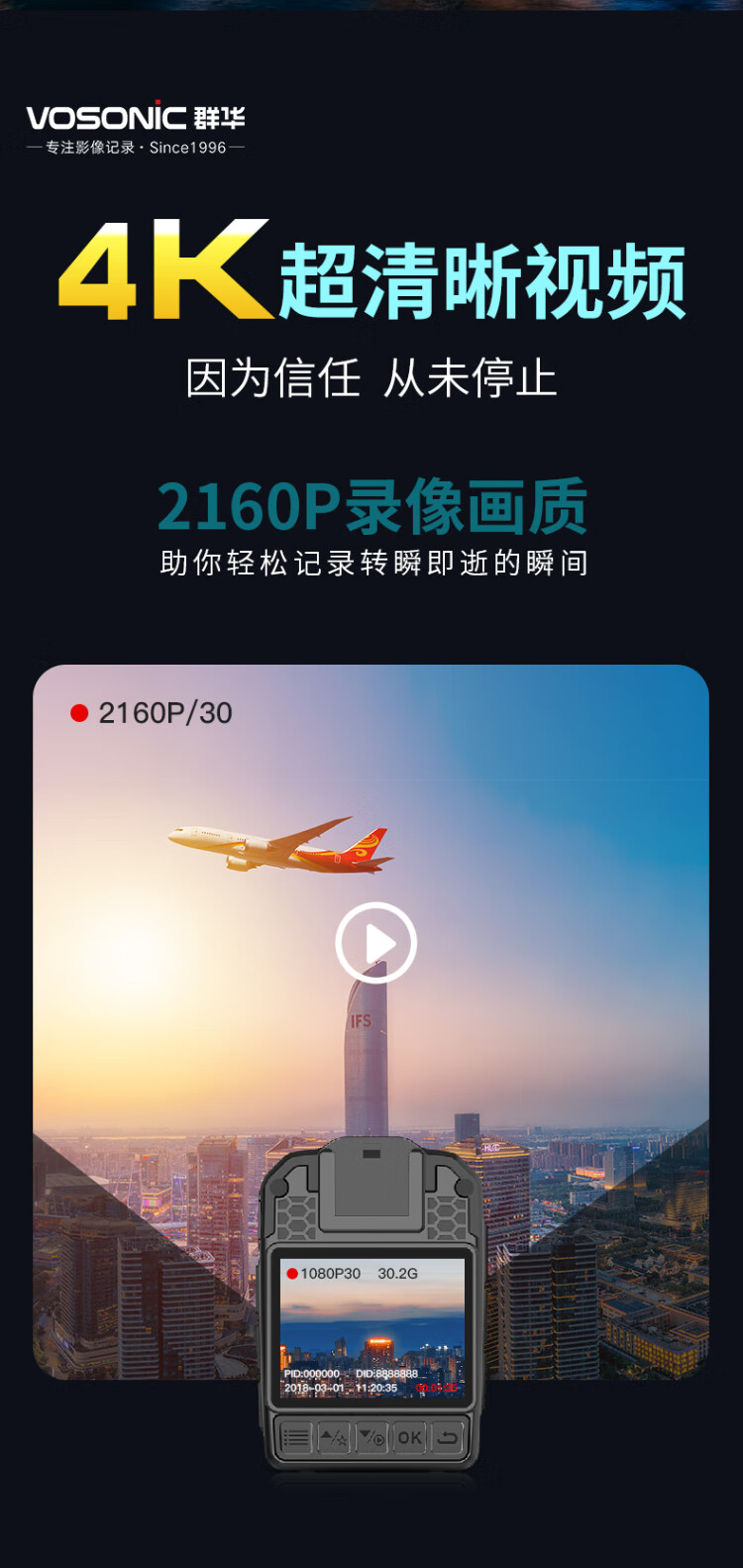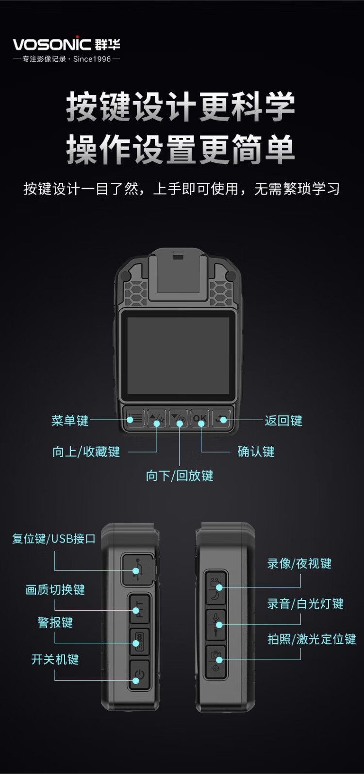 VOSONIC D2 64G 4K law enforcement recorder HD micro body-worn chest portable camera recorder