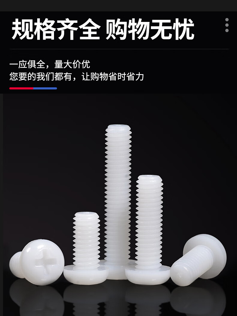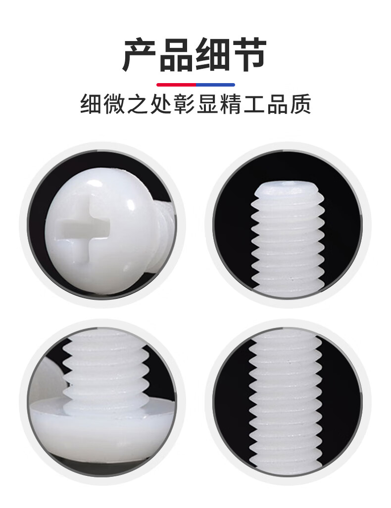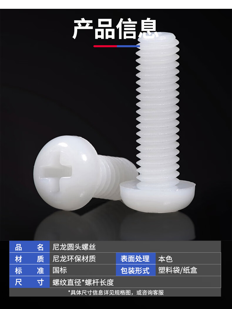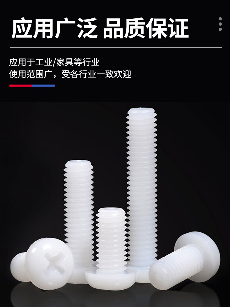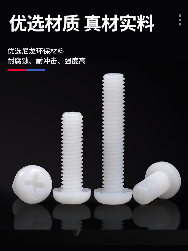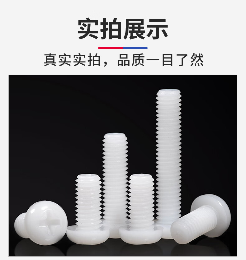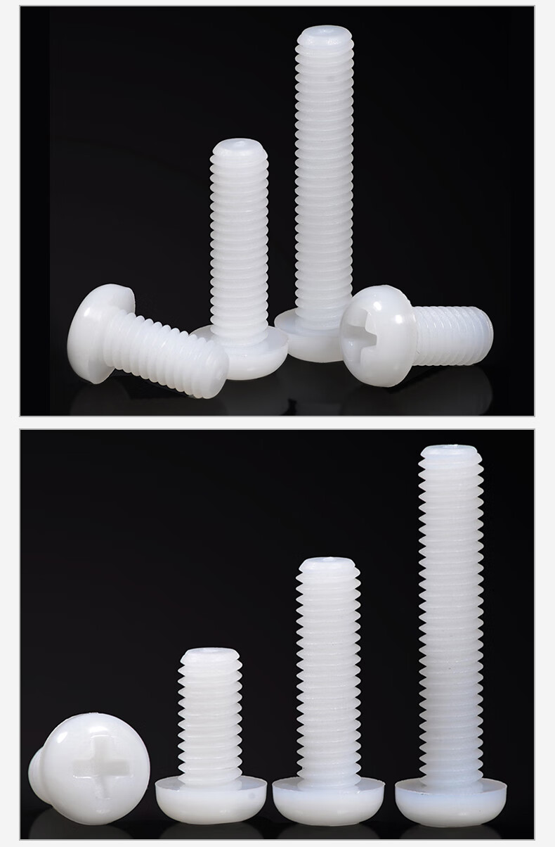 Jinggong M2-M6 nylon round head screws plastic cross pan head screws plastic screws pan head nylon screws GB818 M5*8 (50 pcs)