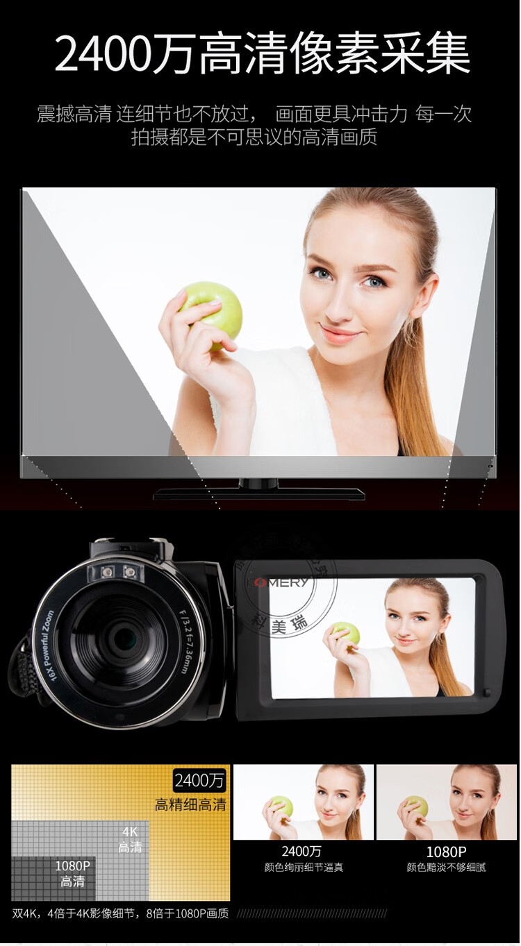 Komery 30 million pixel high-definition digital camera home live broadcast selfie DV travel photo camcorder DV recorder button regular version package four