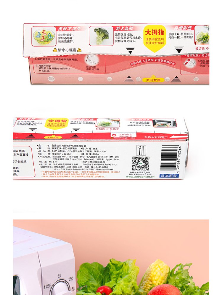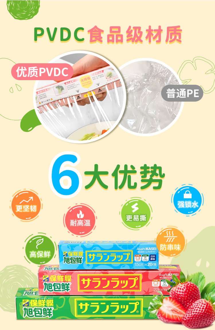 Asahi Baoxian imported from Japan PVDC large roll cling film 22cm*50m high temperature resistant with cutter for food use