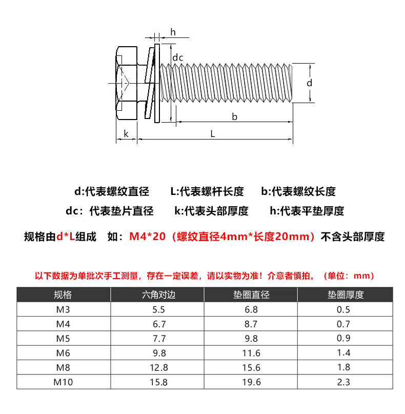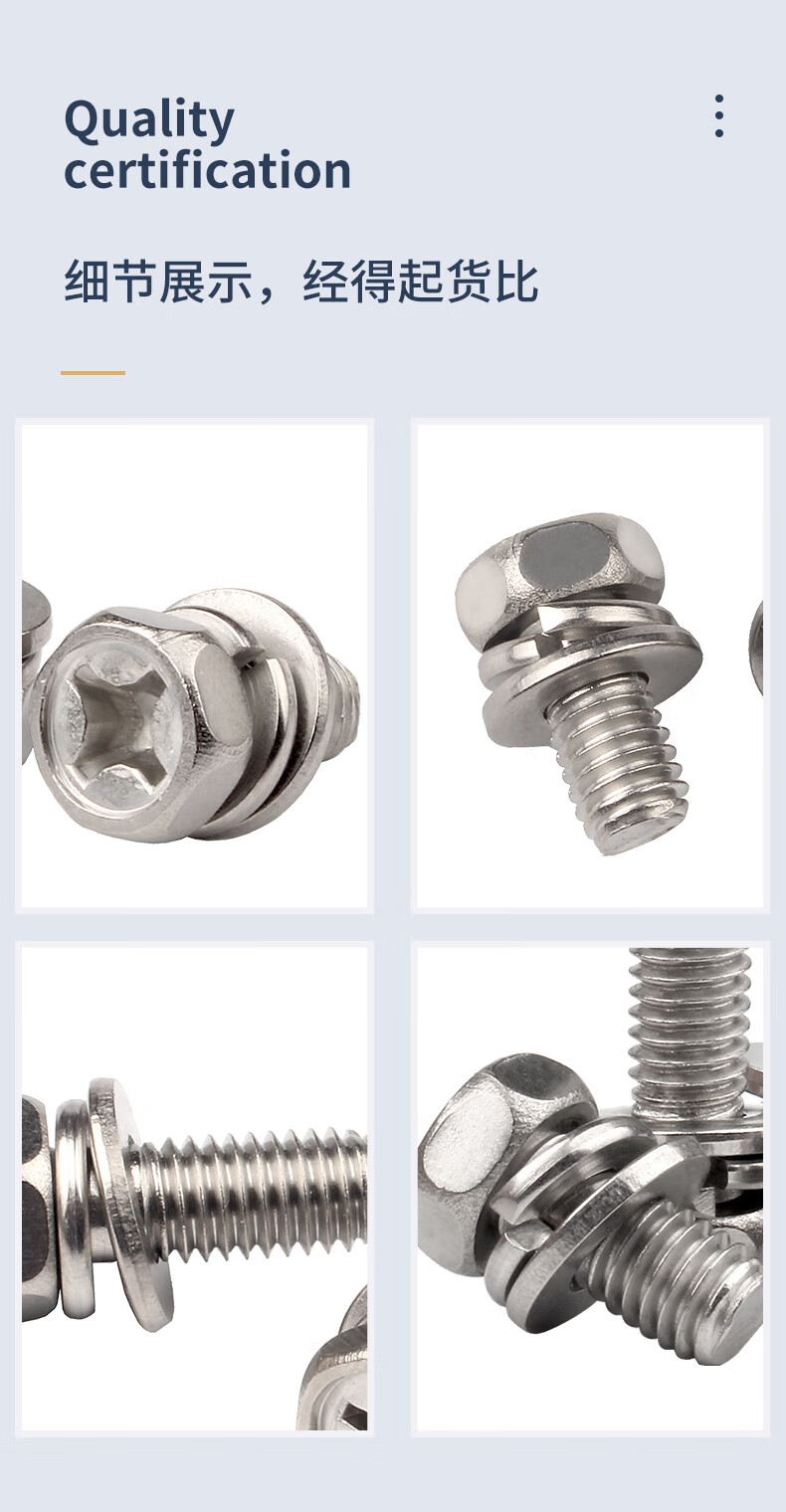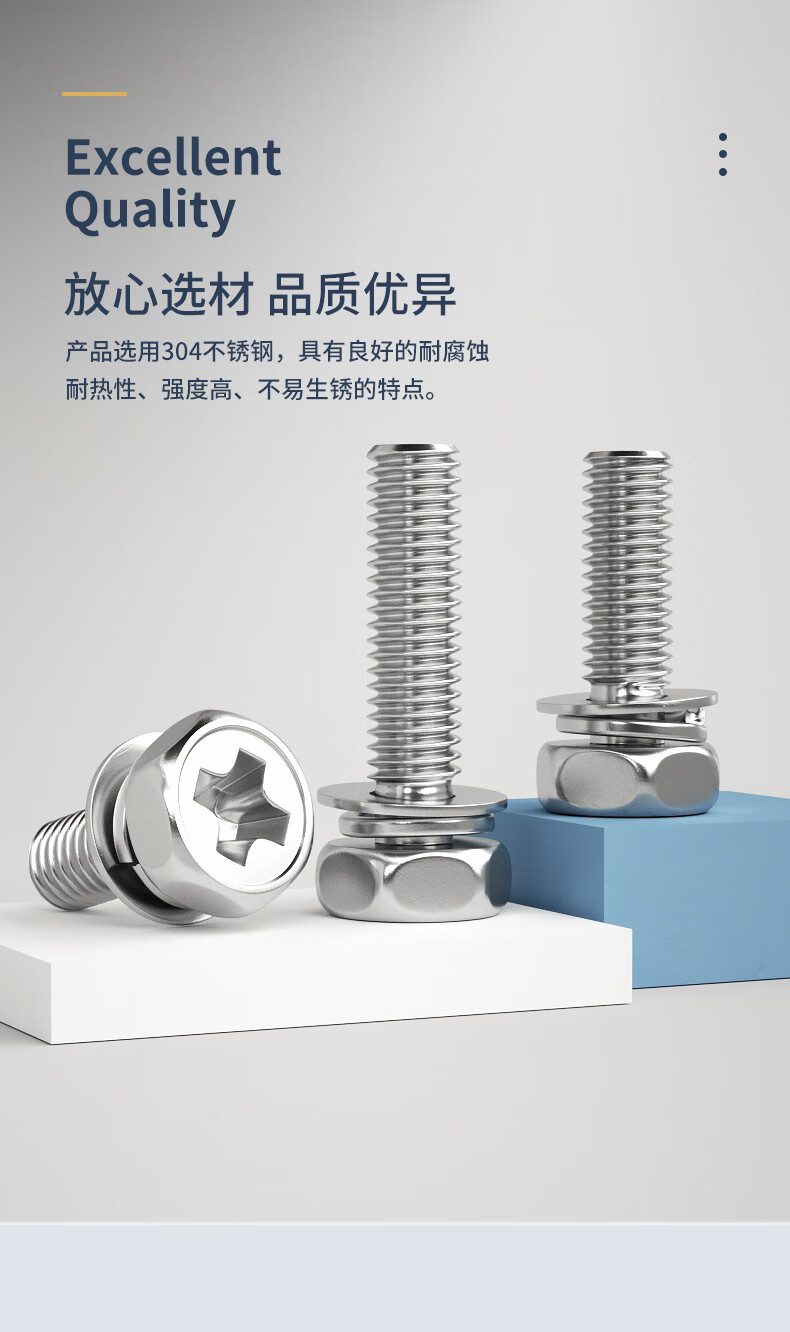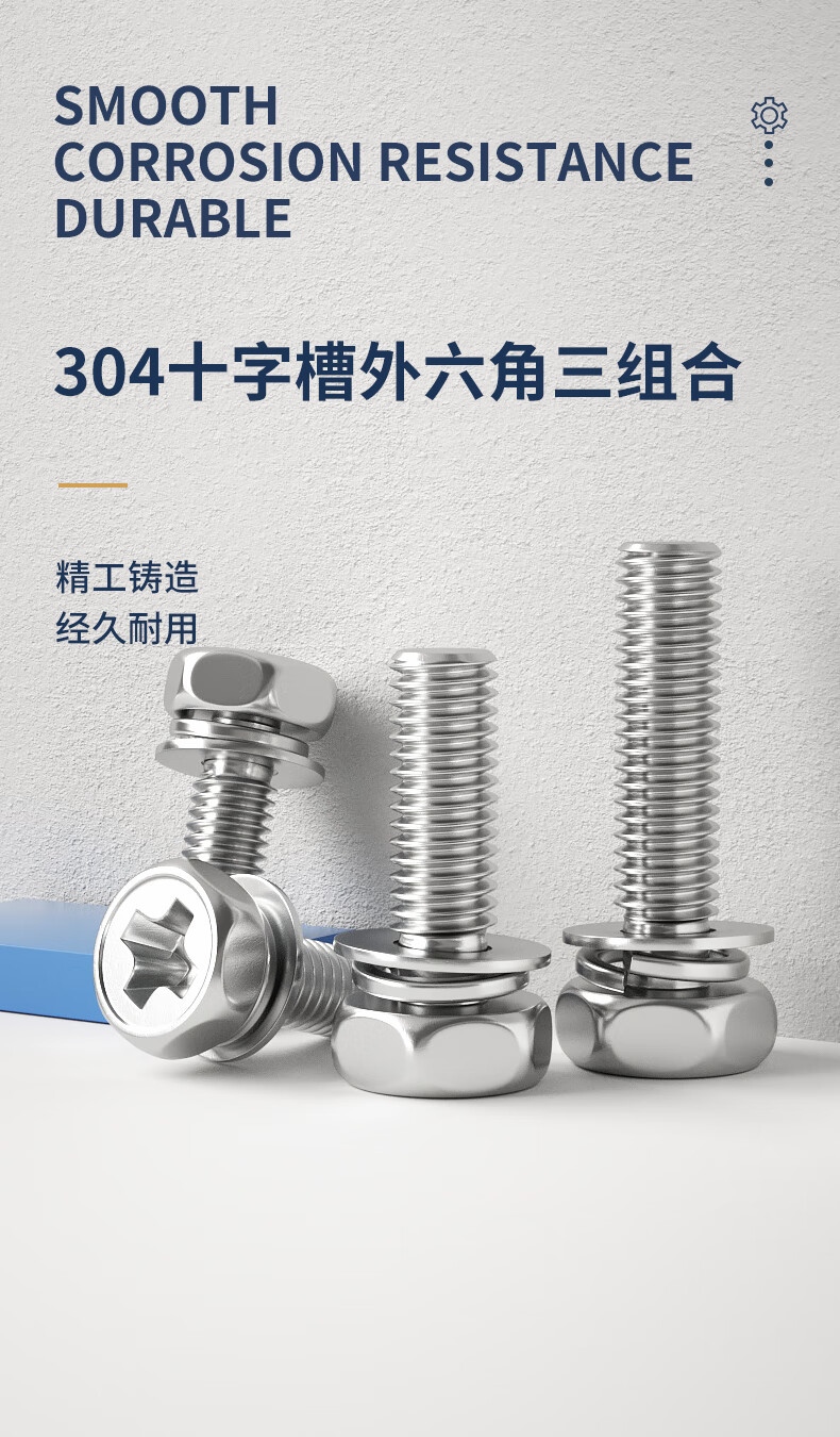 GUWANJI 304 stainless steel cross-shaped external hexagonal three-combination screws, external hexagonal flat washer combination bolts with spring washers, M4*16*9 20 pieces