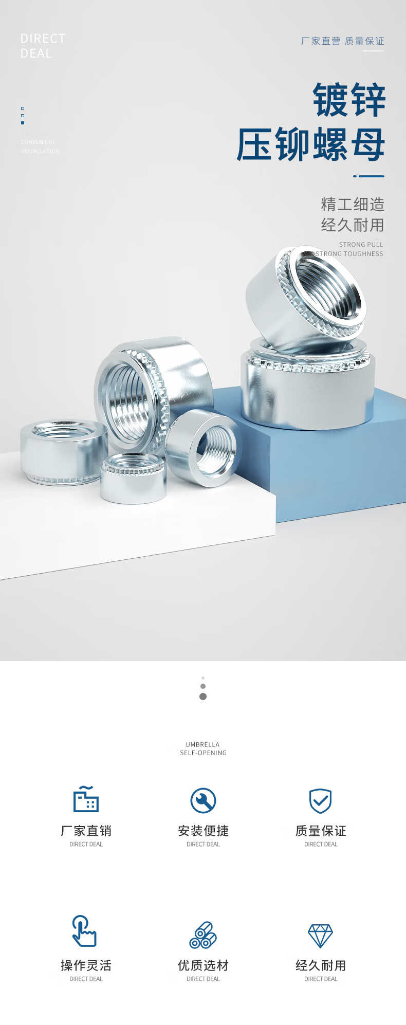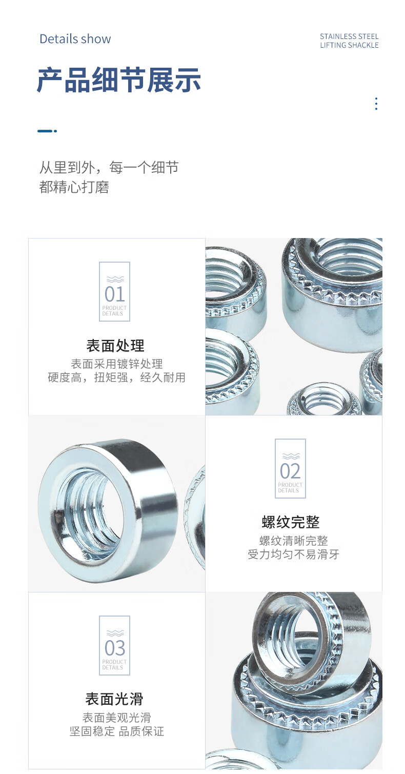 Guwanji pressure rivet nut zinc zinc pressure rivet nut environmentally friendly pressure rivet nut pressure plate round screw nut nut cap S-M4-2 100 pieces plate thickness 1.4mm