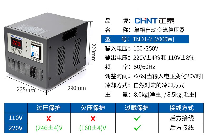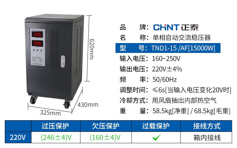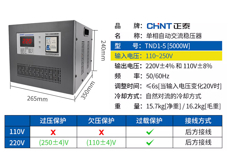 Chint (CHNT) voltage stabilizer 220v single-phase automatic AC voltage stabilizer air conditioner computer refrigerator household appliances voltage stabilizer TND1 industrial high power 220V single-phase voltage stabilizer 5000W