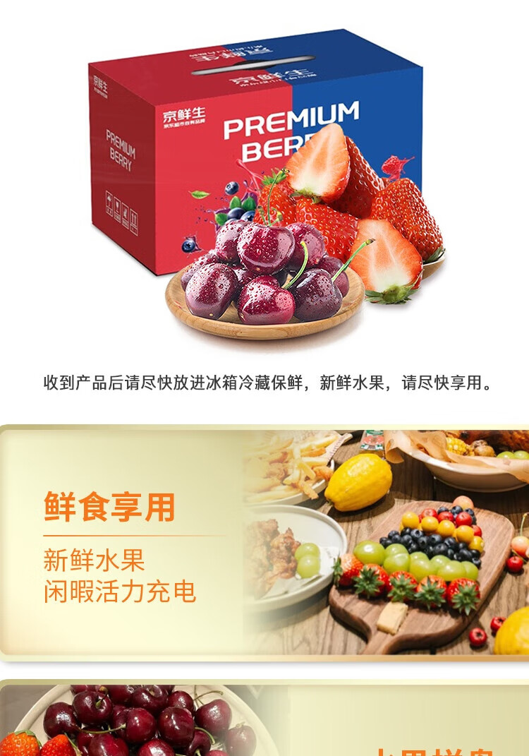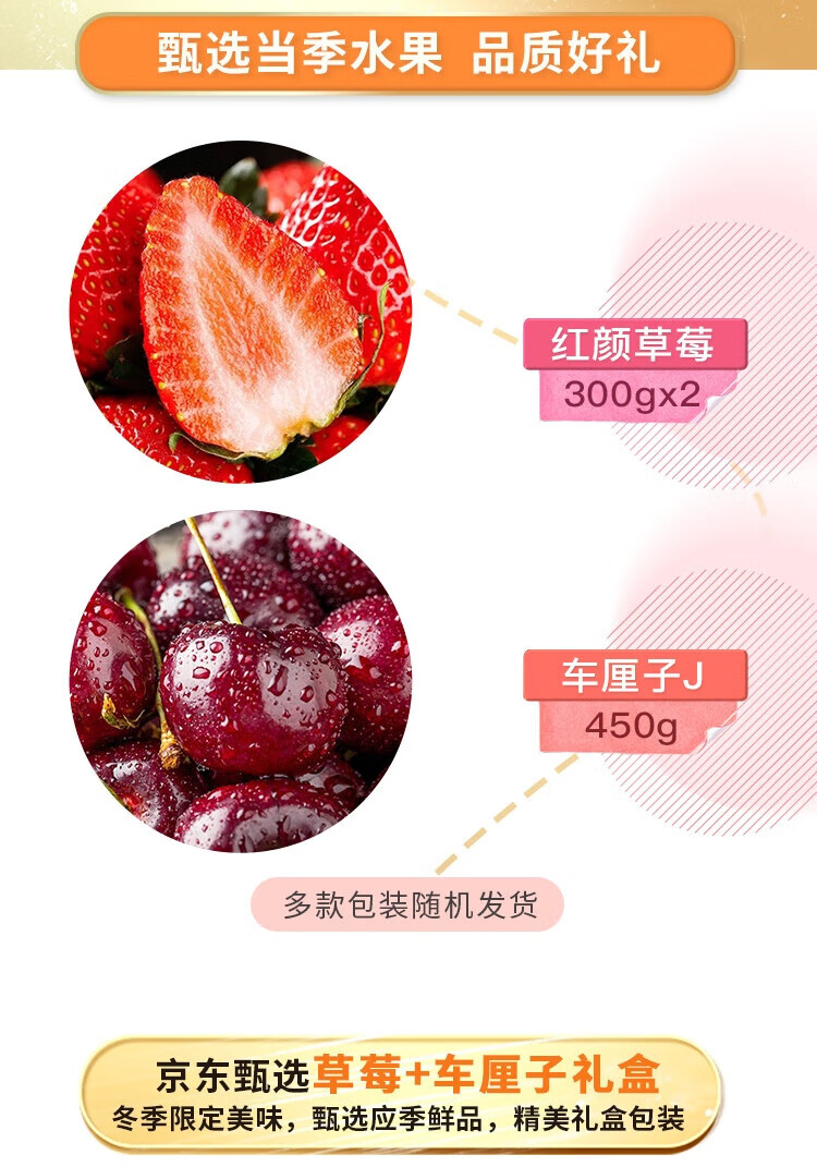 Jingxiansheng Red Strawberry 300g*2 boxes + J Cherry 450g Meiberry Fresh Fruit New Year Gift Box