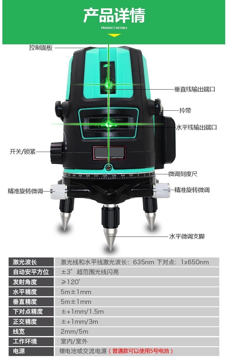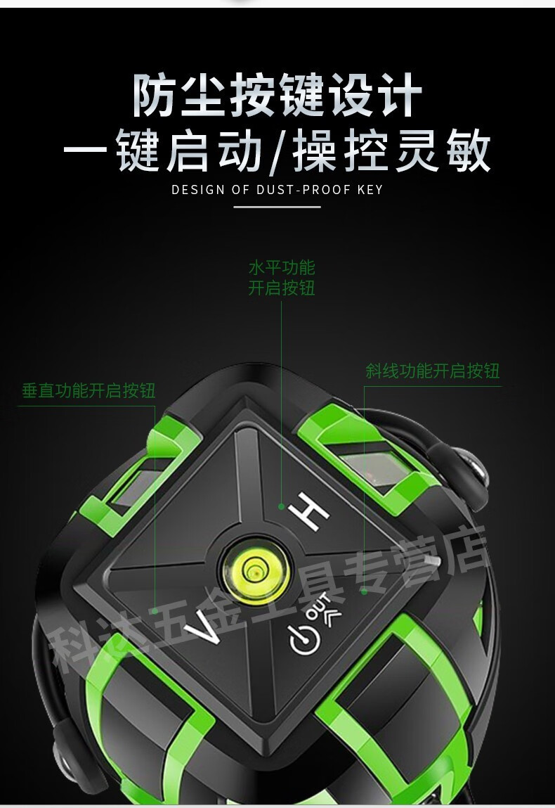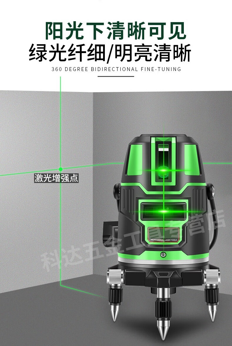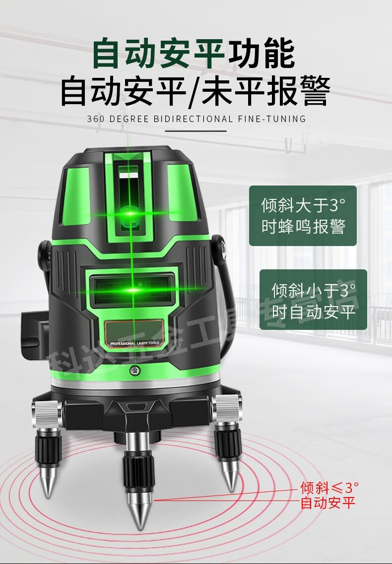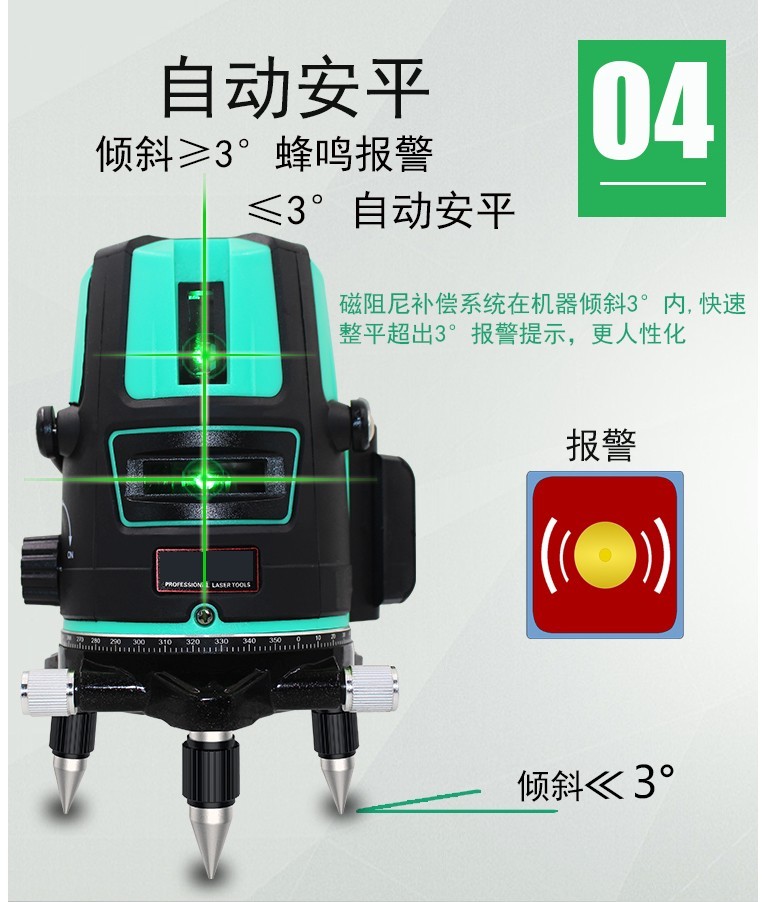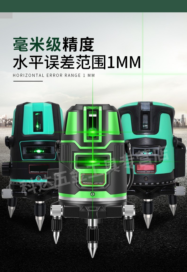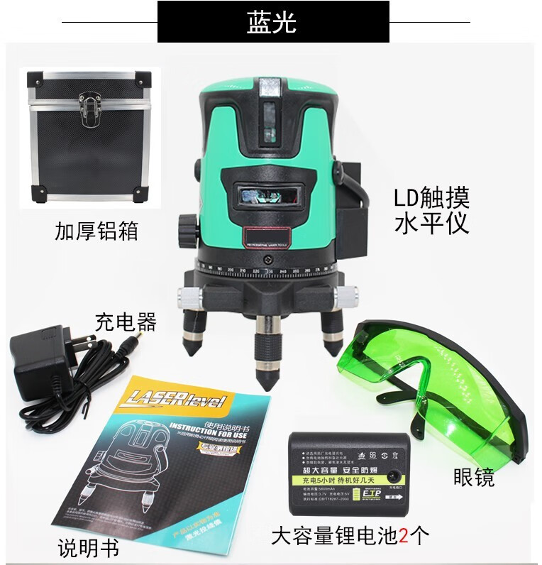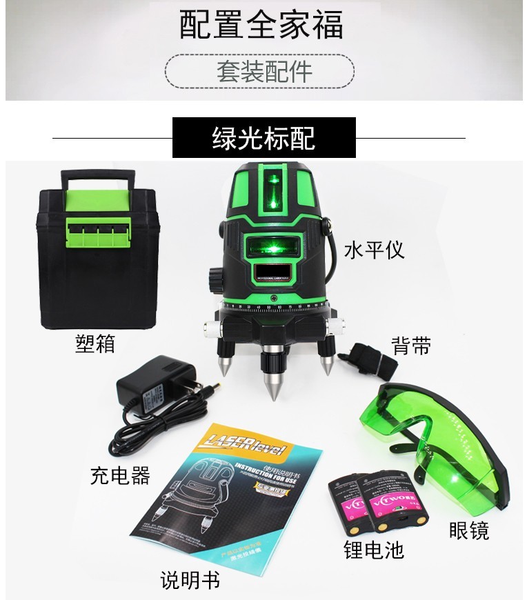 Yongcang infrared level meter green light blue light line meter high precision level ruler laser line meter automatic wall measuring instrument 10,000 times green light 2 lines 2 lithium battery thickened plastic box