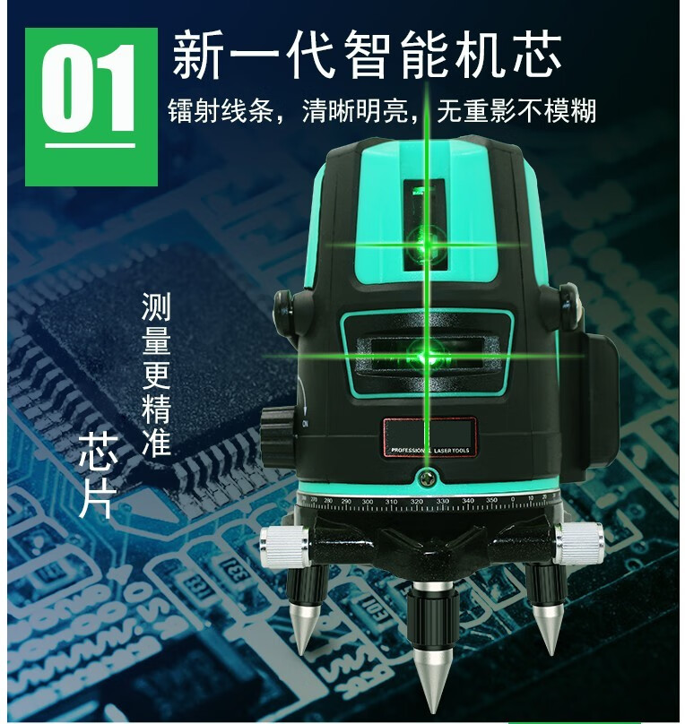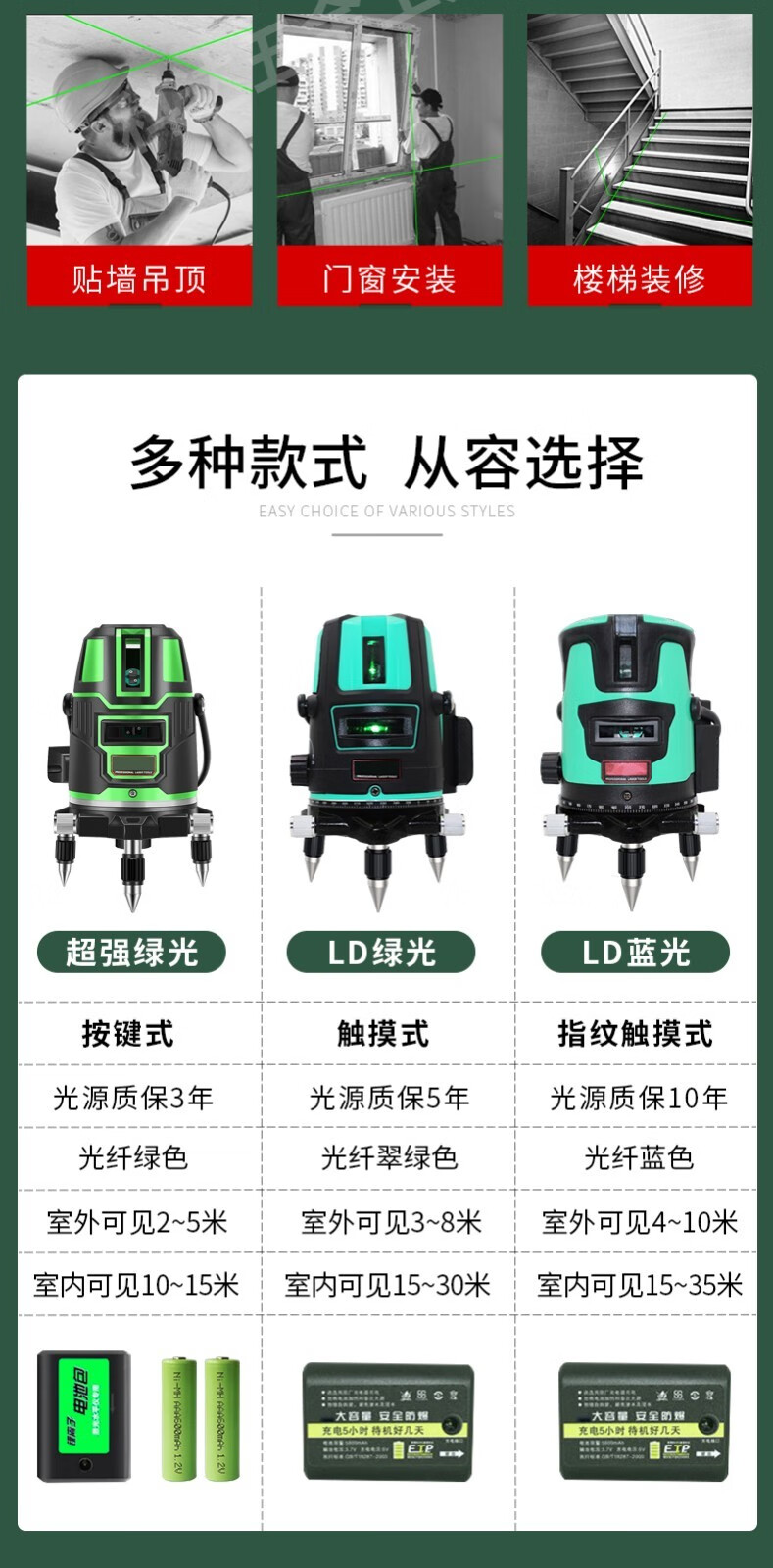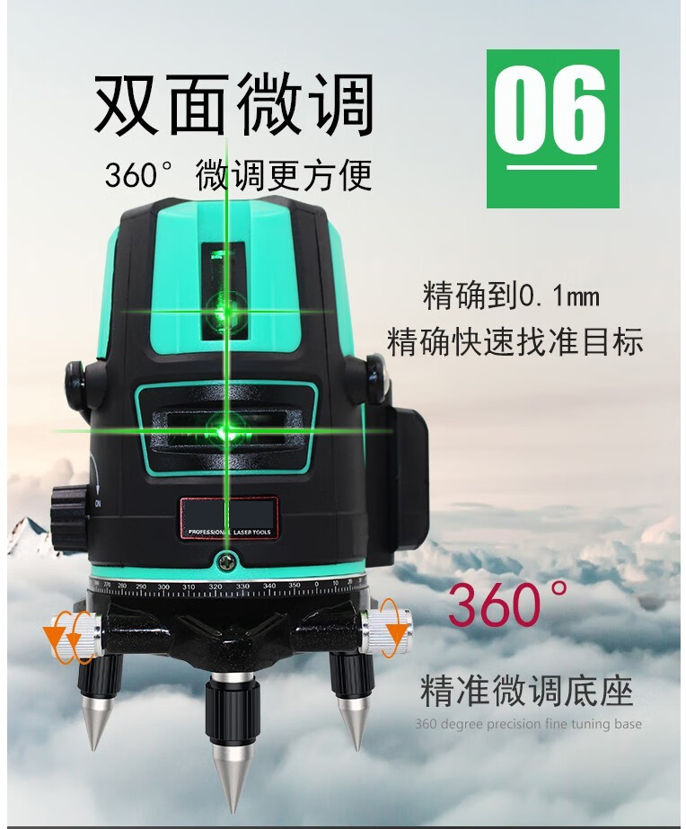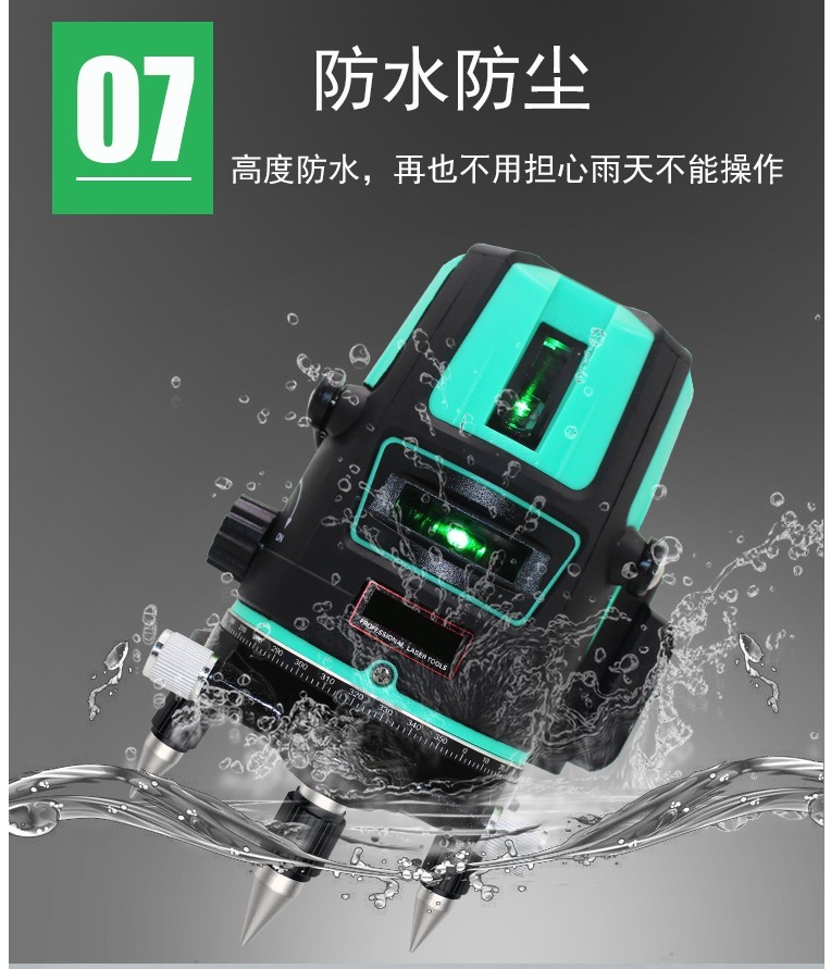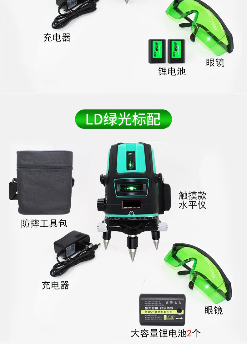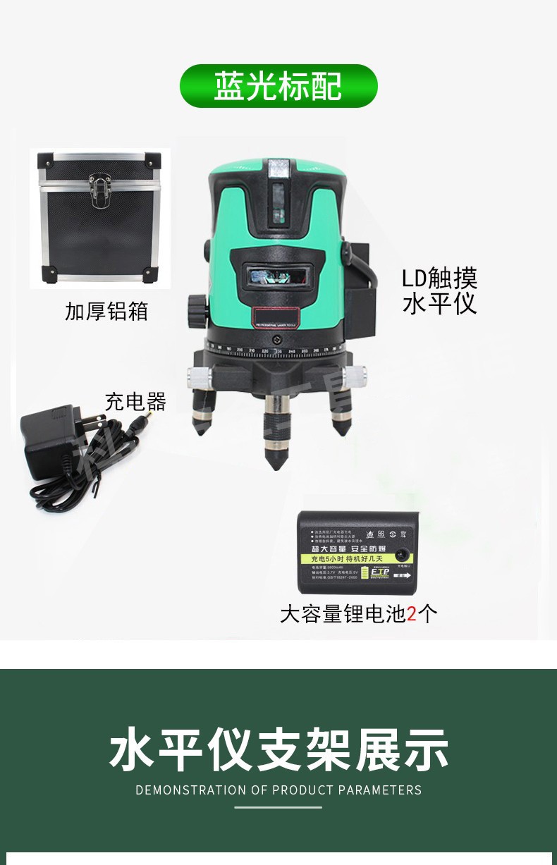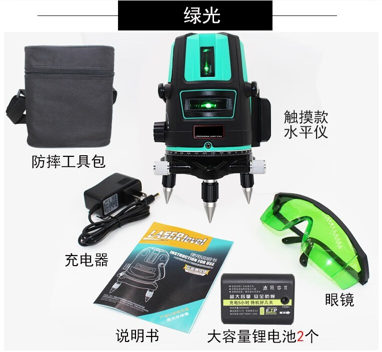 Yongcang infrared level meter green light blue light line meter high precision level ruler laser line meter automatic wall measuring instrument 10,000 times green light 2 lines 2 lithium battery thickened plastic box