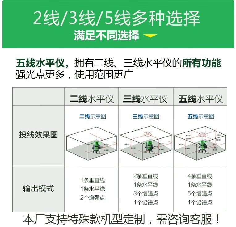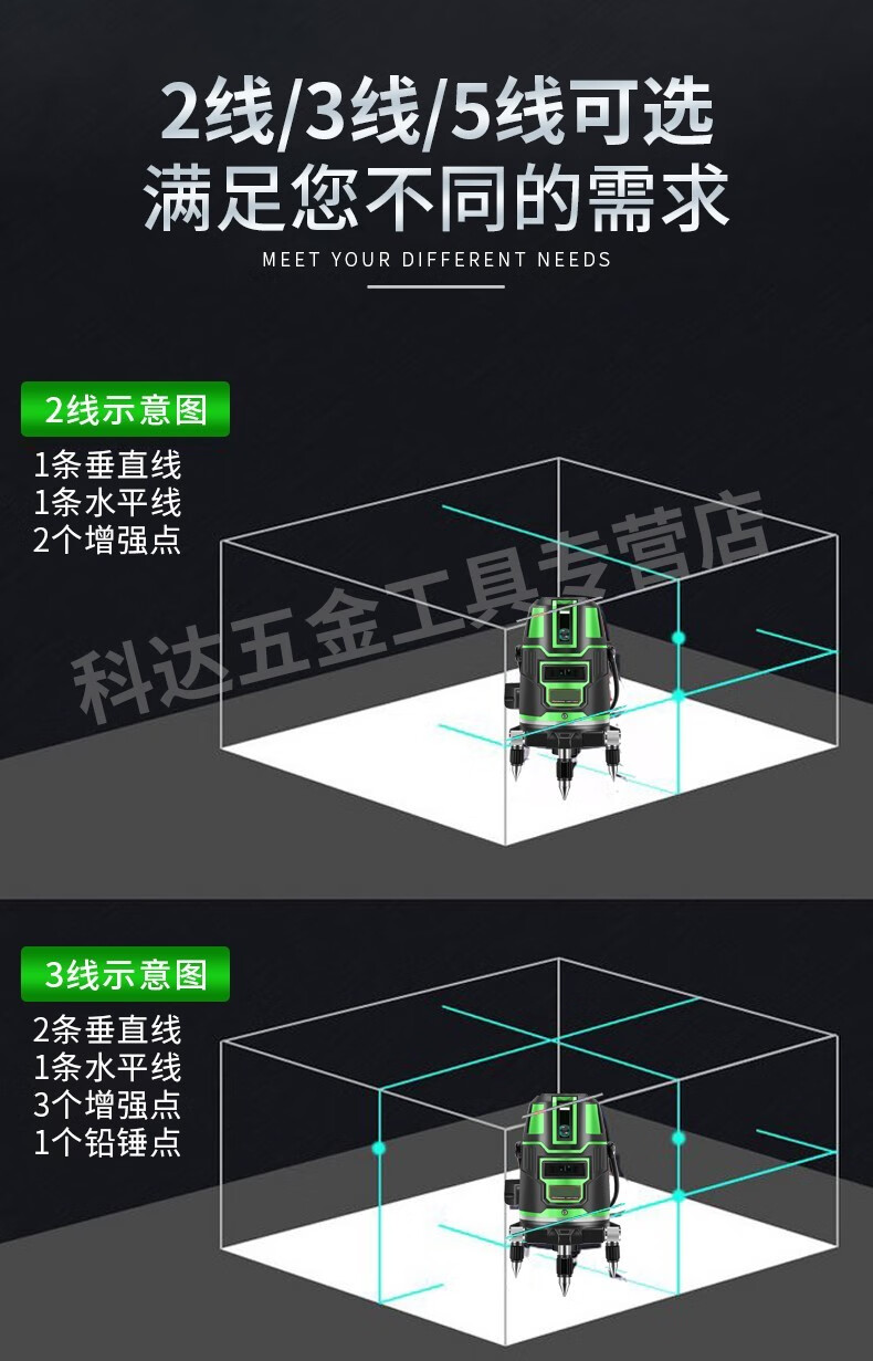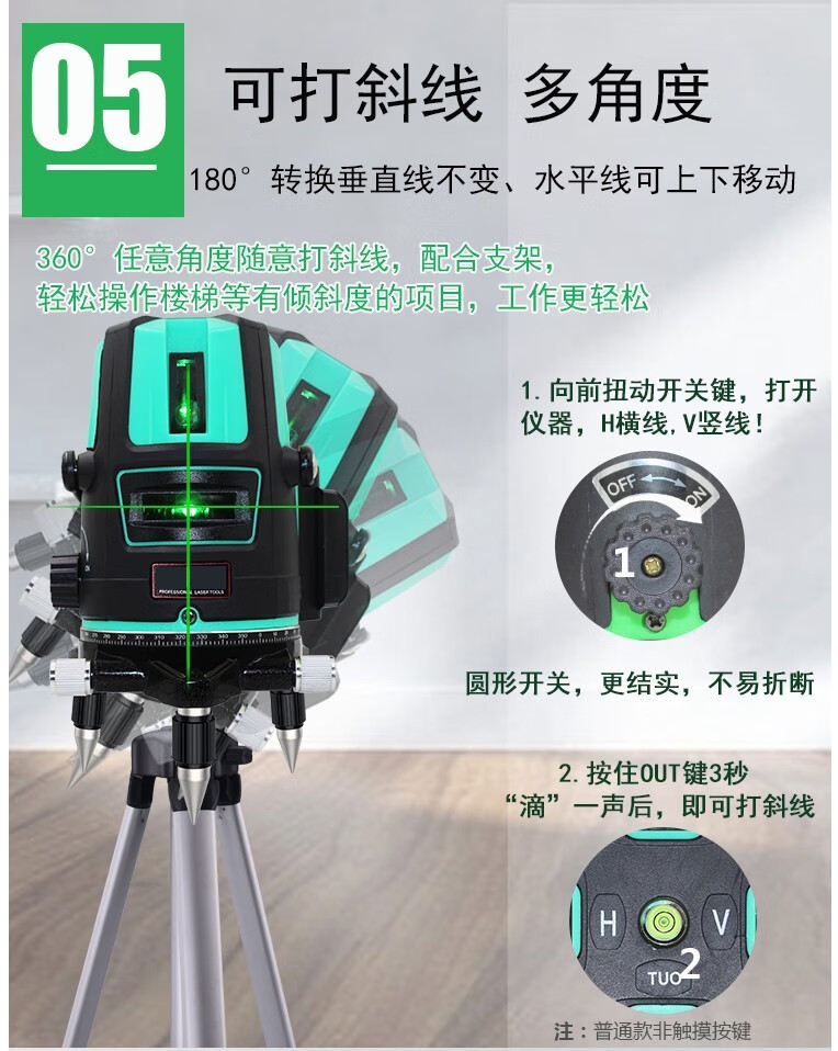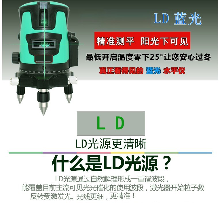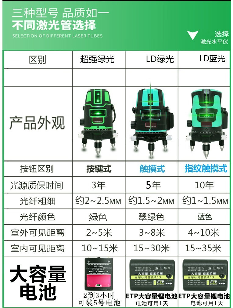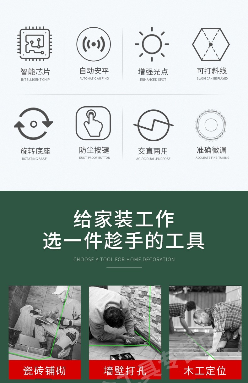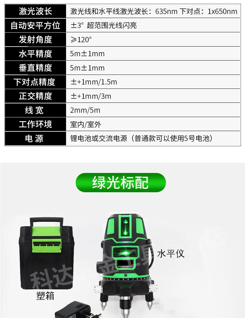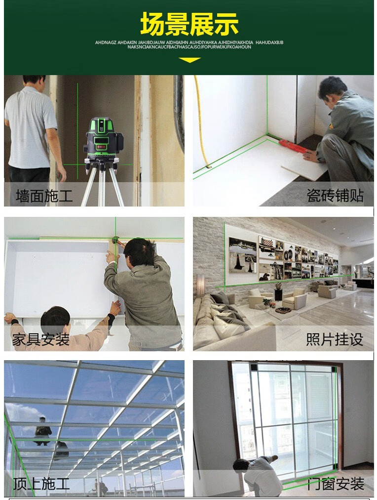 Yongcang infrared level meter green light blue light line meter high precision level ruler laser line meter automatic wall measuring instrument 10,000 times green light 2 lines 2 lithium battery thickened plastic box
