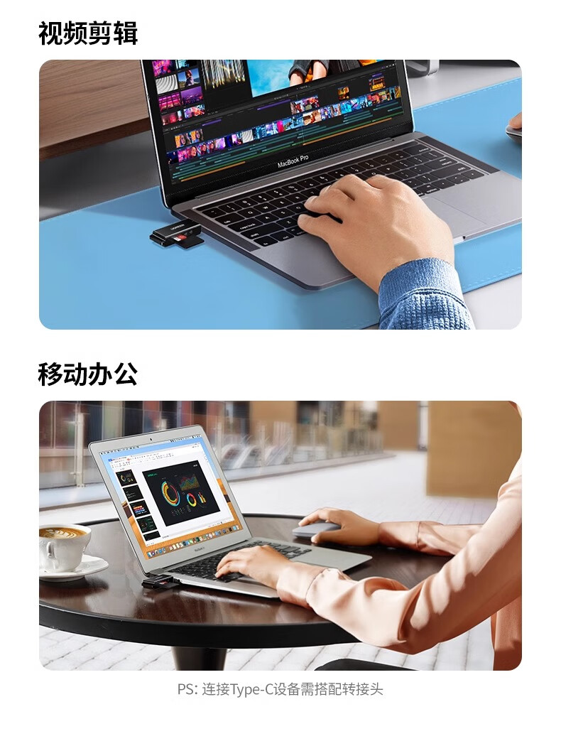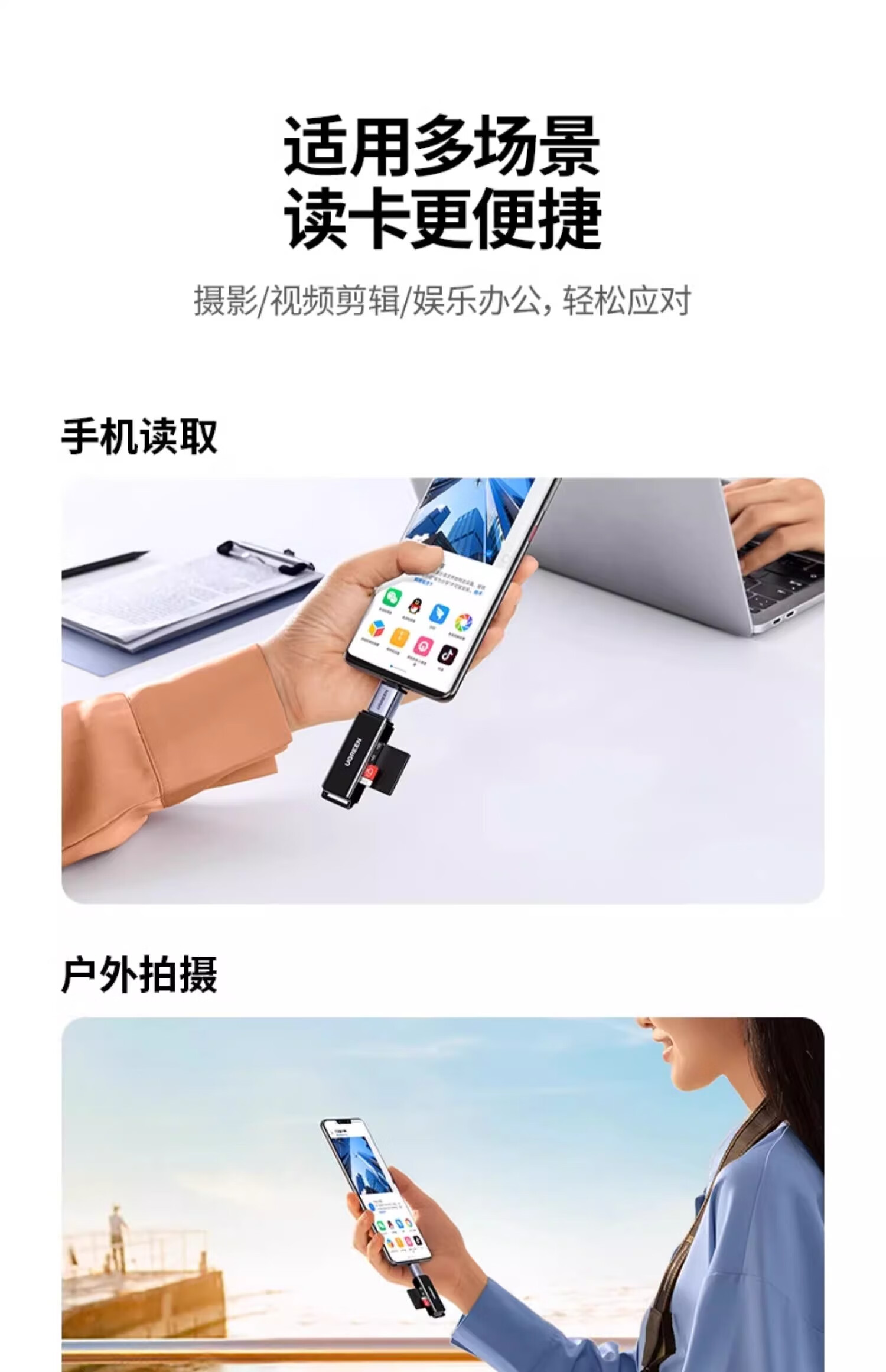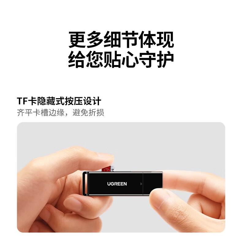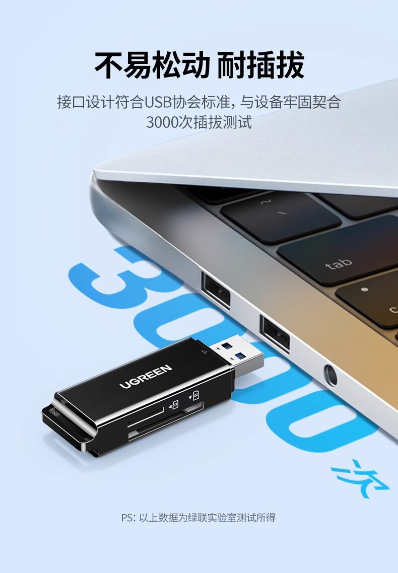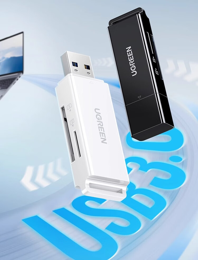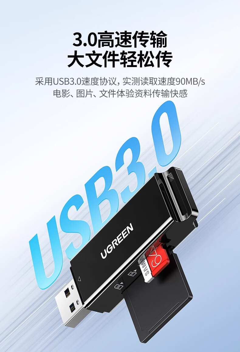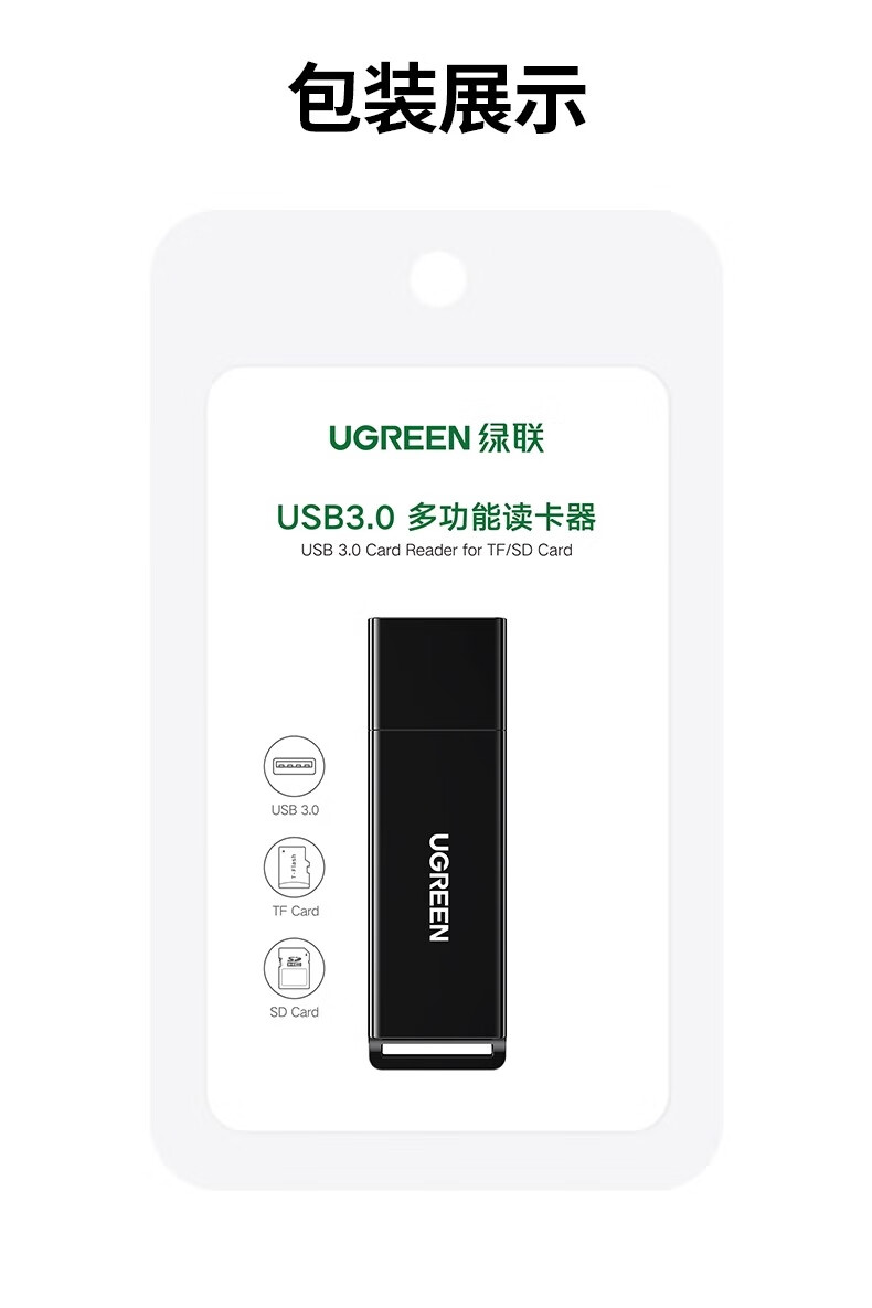 UGREEN multifunctional two-in-one card reader USB3.0/2.0 high-speed reading supports TF/SD camera driving recorder memory card mobile phone plastic case supports SDTF card dual card dual reading black supports SD/TF card