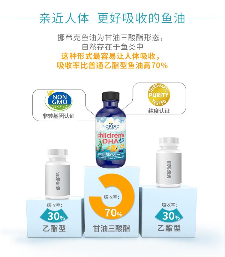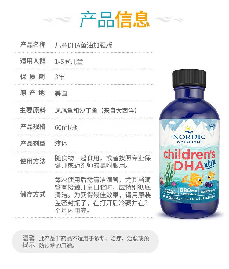 Norwegian fish Nordic children's dha fish oil 3 times highly concentrated omega-3 fish oil enhanced version 60ml