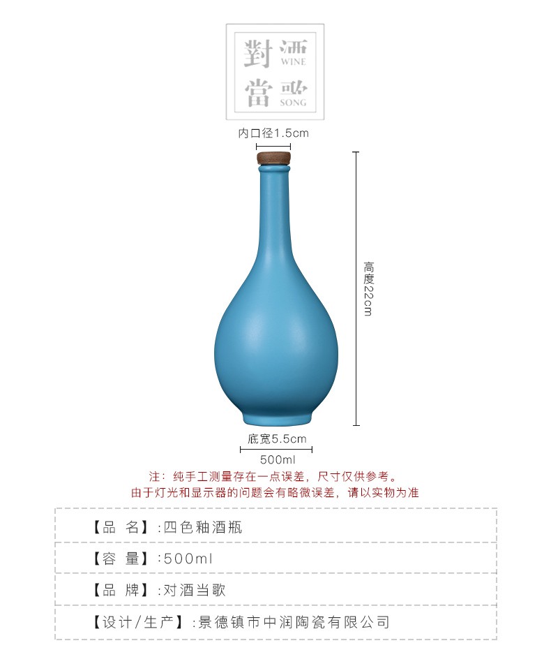 Zhongrun porcelain one pound wine bottle ceramic ornaments antique high-end creative wine bottle household sealed wine jar sake bottle jar empty bottle matt white
