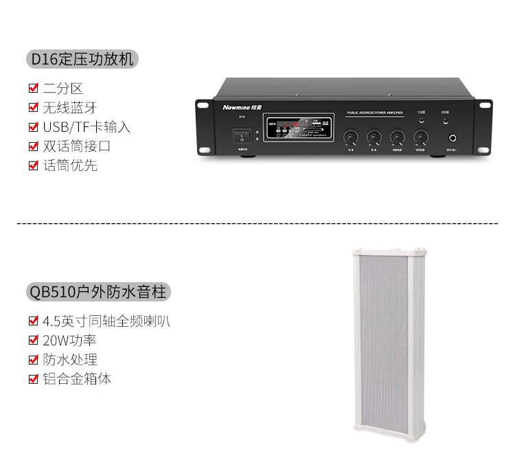 Newmine QB-512 Outdoor Ceiling Speaker Waterproof Speaker Column Outdoor Public Broadcasting Ceiling Speaker Wall Mounted Speaker Amplifier (20W One to Two)