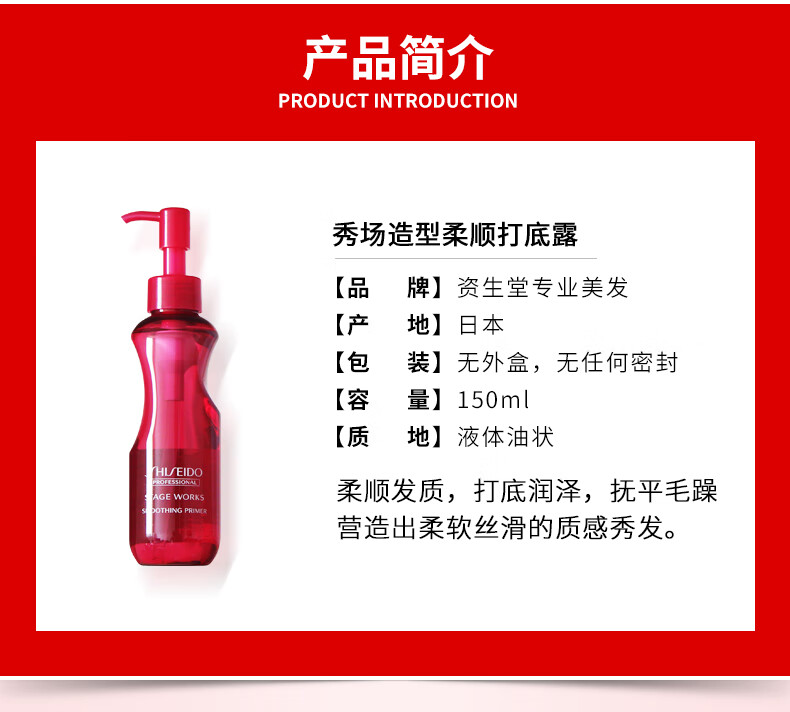 SHISEIDO PROFESSIONAL Smooth Primer Show Style Moisturizing Smoothing Improves Frizz Nutritional Hair Care Essential Oil No-Rinse Imported Smooth Primer 150ml