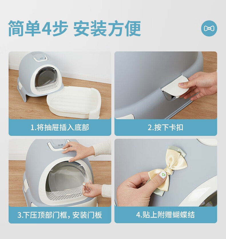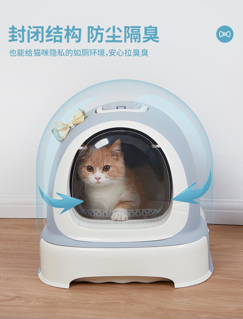Meika Classic Doraemon fully enclosed cat litter box large anti-splash and odor isolation large space cat toilet potty sapphire color
