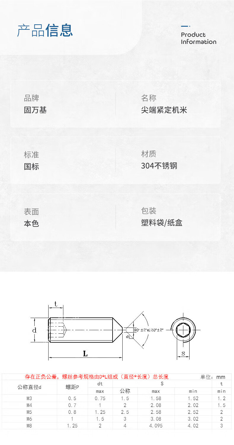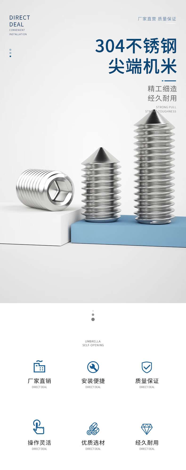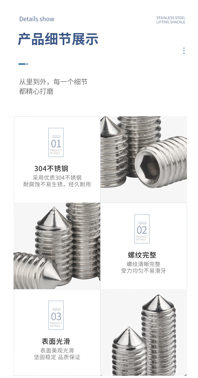 Guwanji set screw 304 stainless steel tip machine screw set screw top screw headless hexagonal screw M5x6 50 pieces