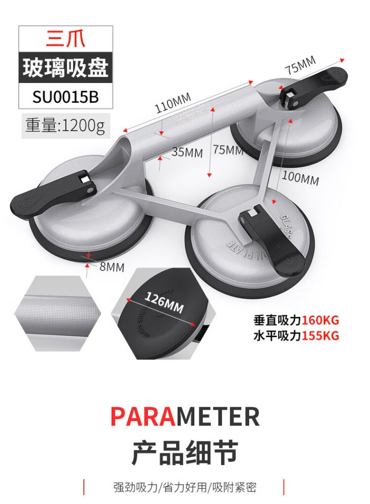 Kraftwell aluminum alloy glass strong suction cup electrostatic floor tile large screen ceiling installation and handling SU0015A01