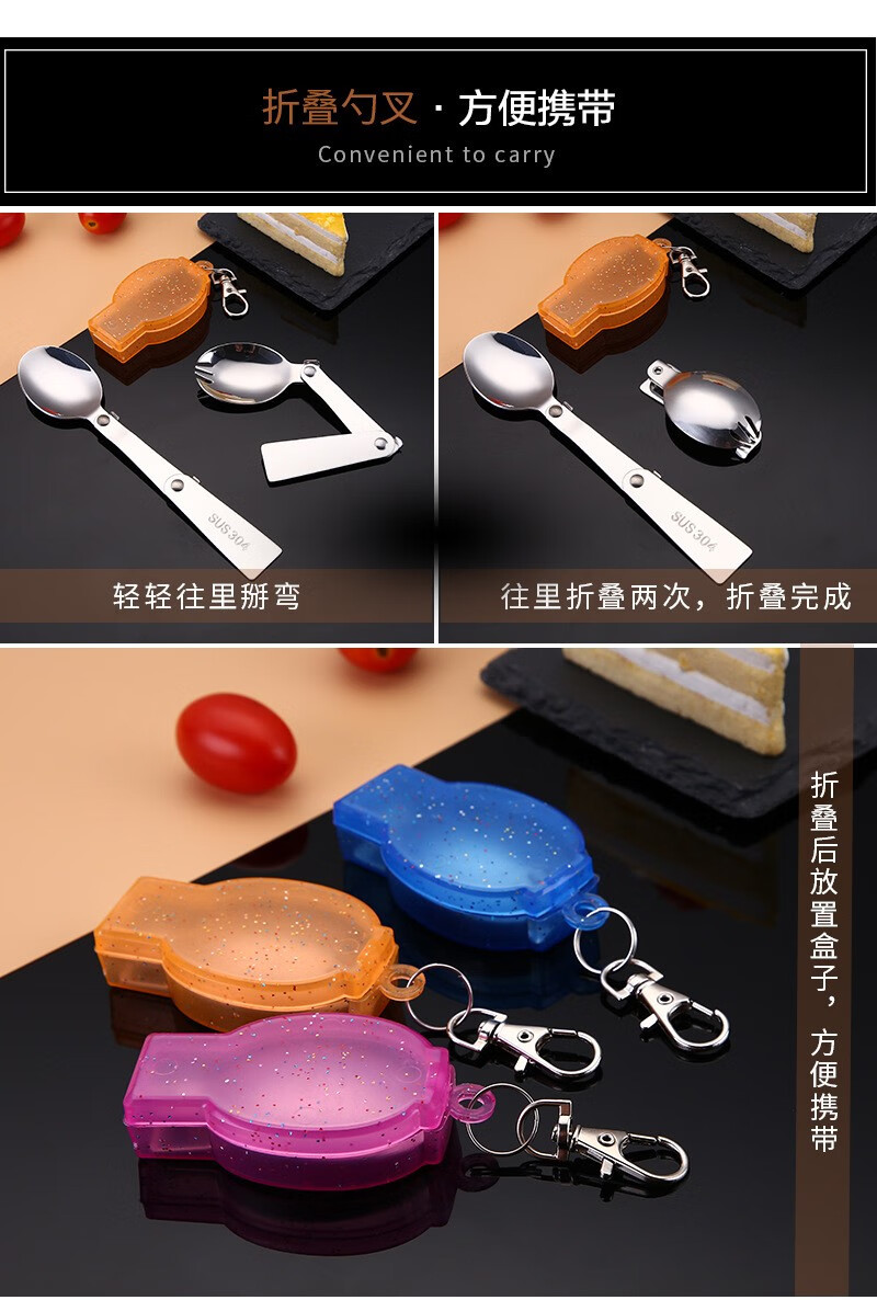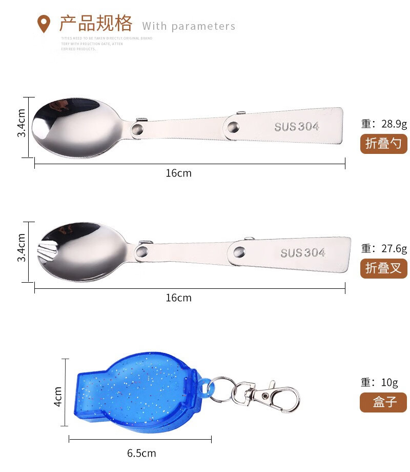 Changyin Creative 304 Stainless Steel Folding Spoon Outdoor Travel Portable Tableware Spoon Picnic Tableware Spoon Rice Spoon Fork Spoon Style Red Box