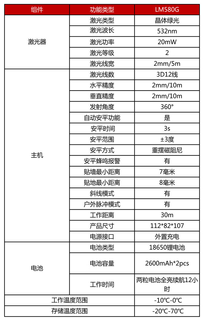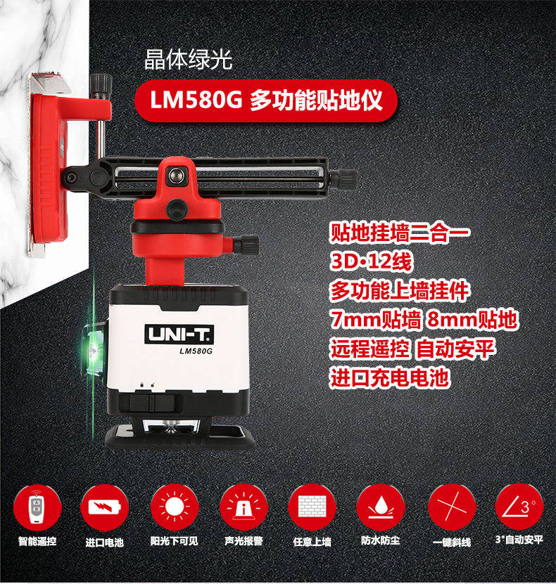 Unilide LM580G green light 12-wire floor-mounted instrument wall-mounted laser level high-precision level indoor and outdoor LM580G (green light 12-wire)