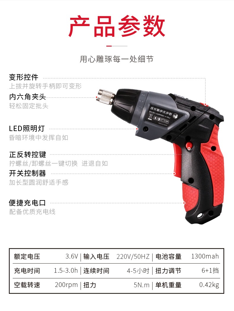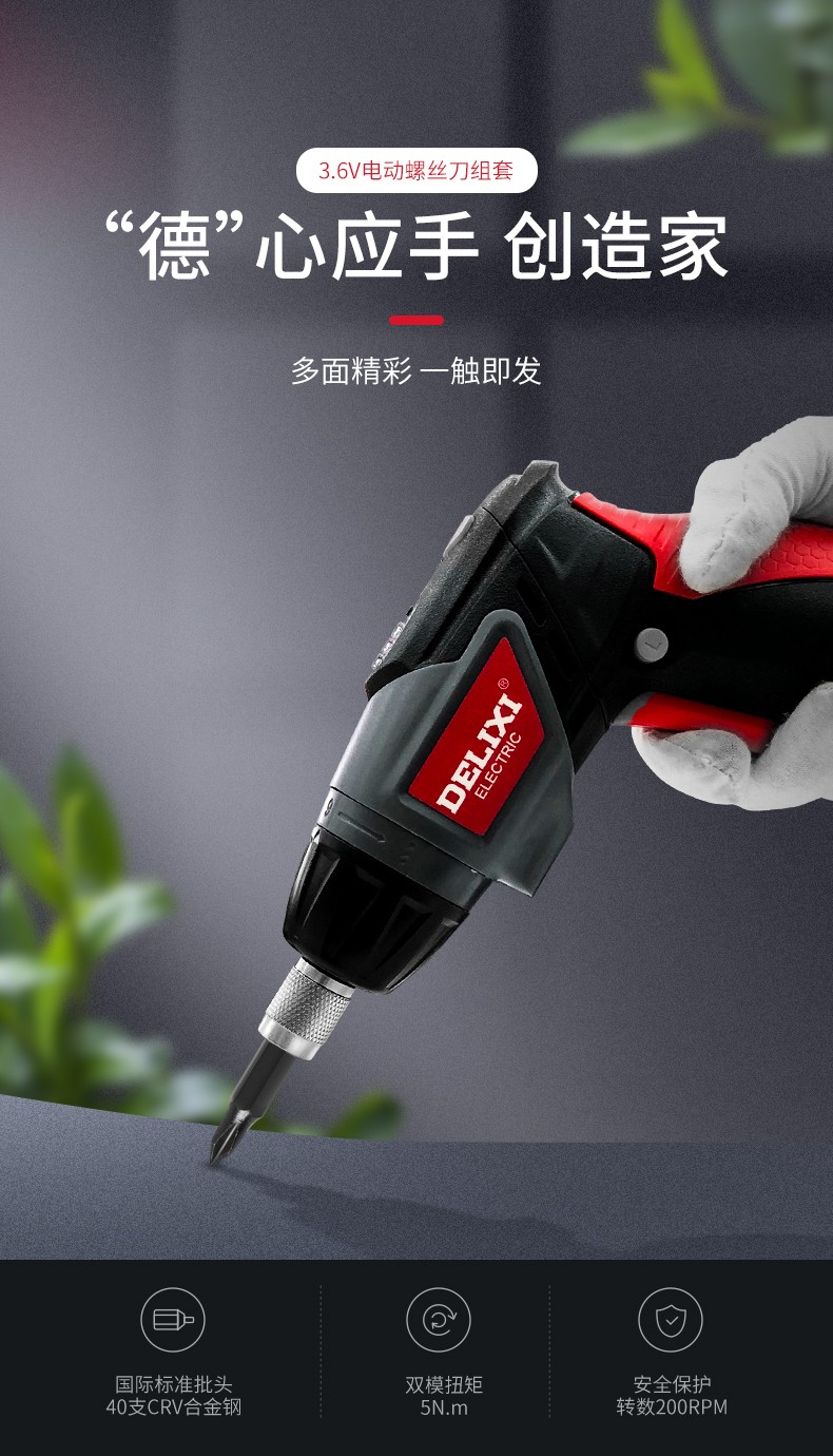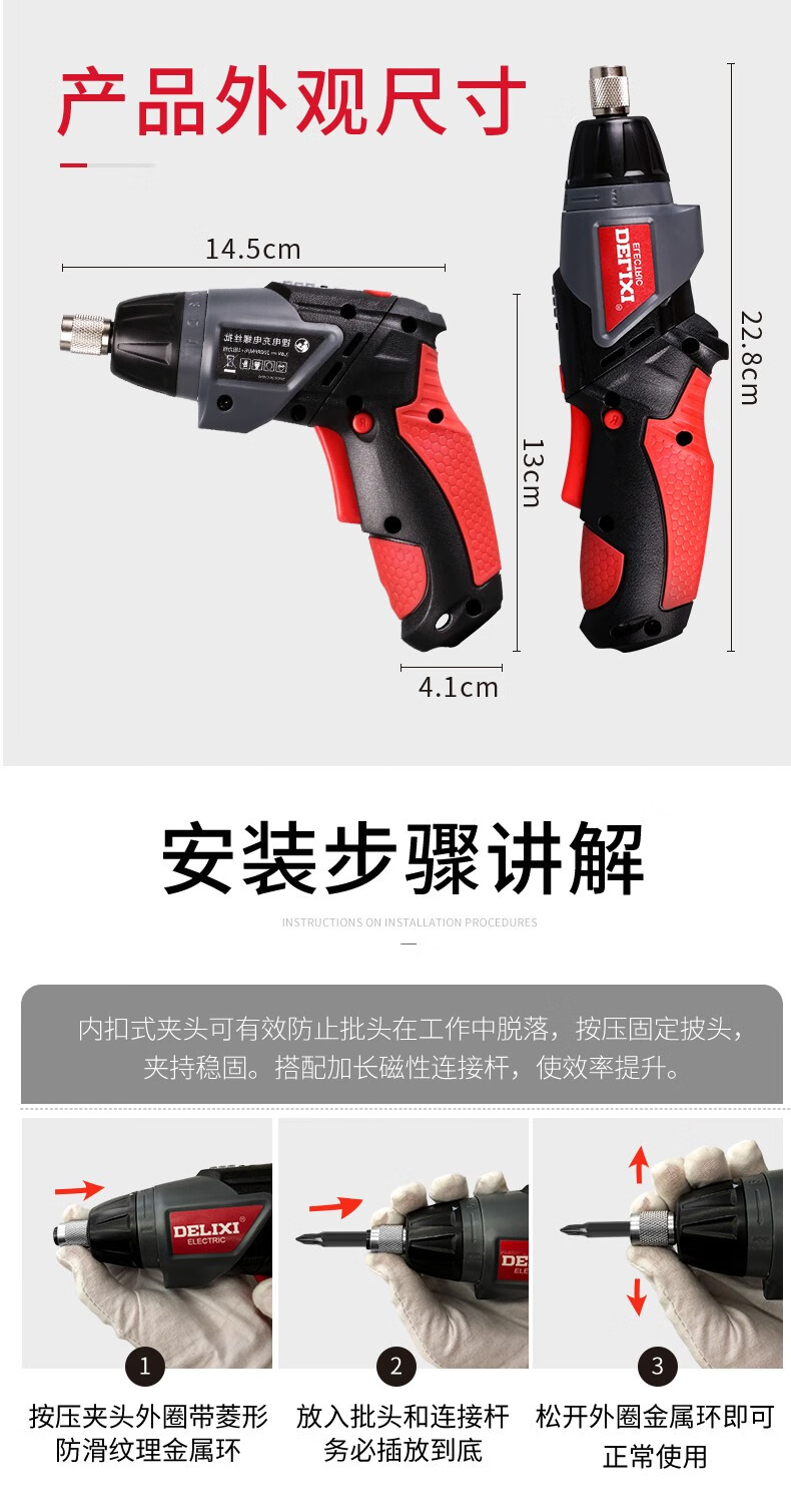 Delixi Electric Lithium Electric Screwdriver Rechargeable Electric Screwdriver Household Mini Screwdriver Set Rechargeable Lithium 3.6V Screwdriver 46-piece Set