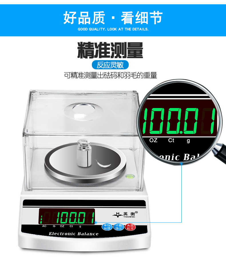 Yingheng high-precision electronic balance scale 0.01 jewelry scale accurate gram scale gold scale precision electronic scale laboratory electronic scale 0.1 analytical balance scale 0.001g rechargeable square plate 5000g accuracy 0.01g