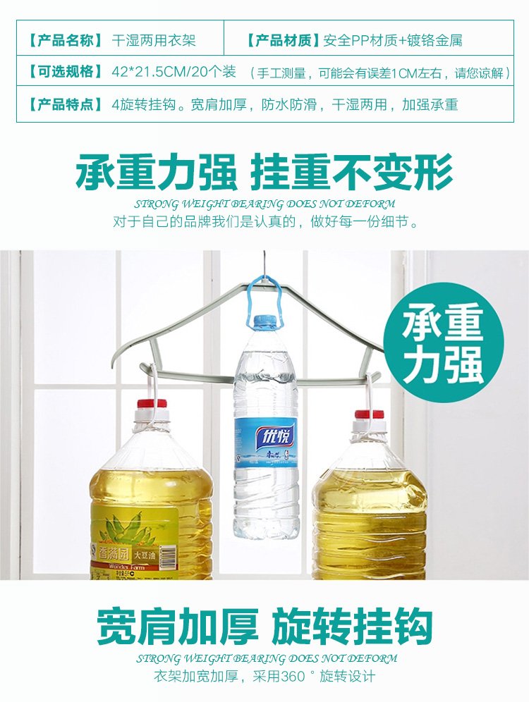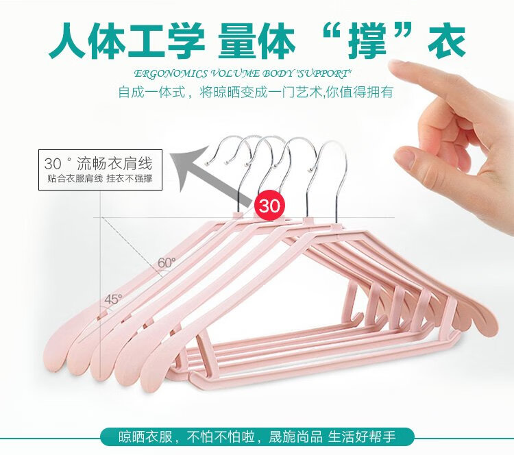 Sheng Ni Shangpin 20 plastic coat hangers, thickened, non-slip, non-bulging, non-bulging coat hangers, 4 colors