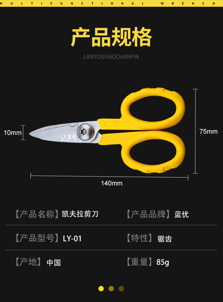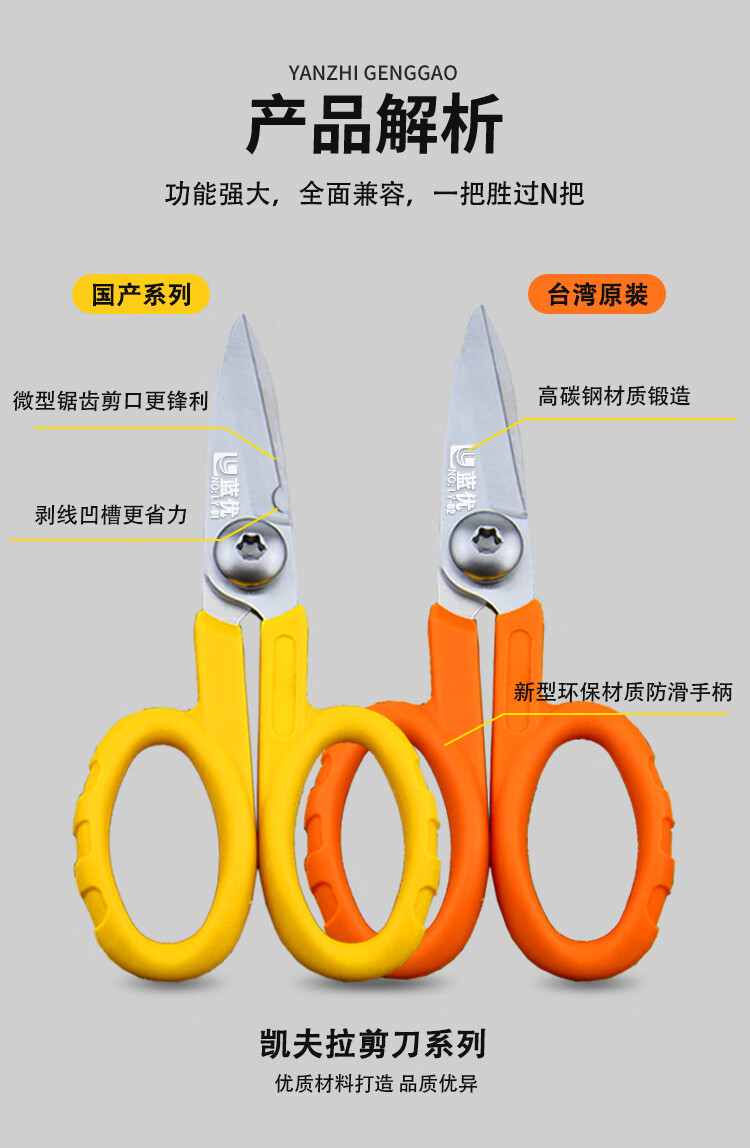 Lanyou Kevlar scissors with serrated aramid scissors Taiwan imported fiber pigtail jumper scissors fishing line network cable body armor special scissors electrician scissors hardware tools scissors Kevlar aramid scissors LY-01