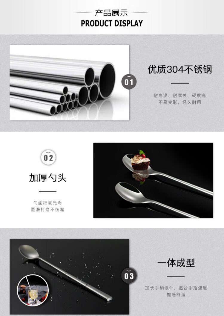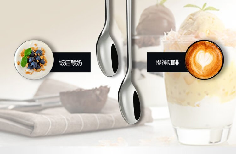 LUCUKU 304 stainless steel long-handled coffee stirring spoon, baby feeding complementary food, small spoon for stirring milk powder, 2 pieces