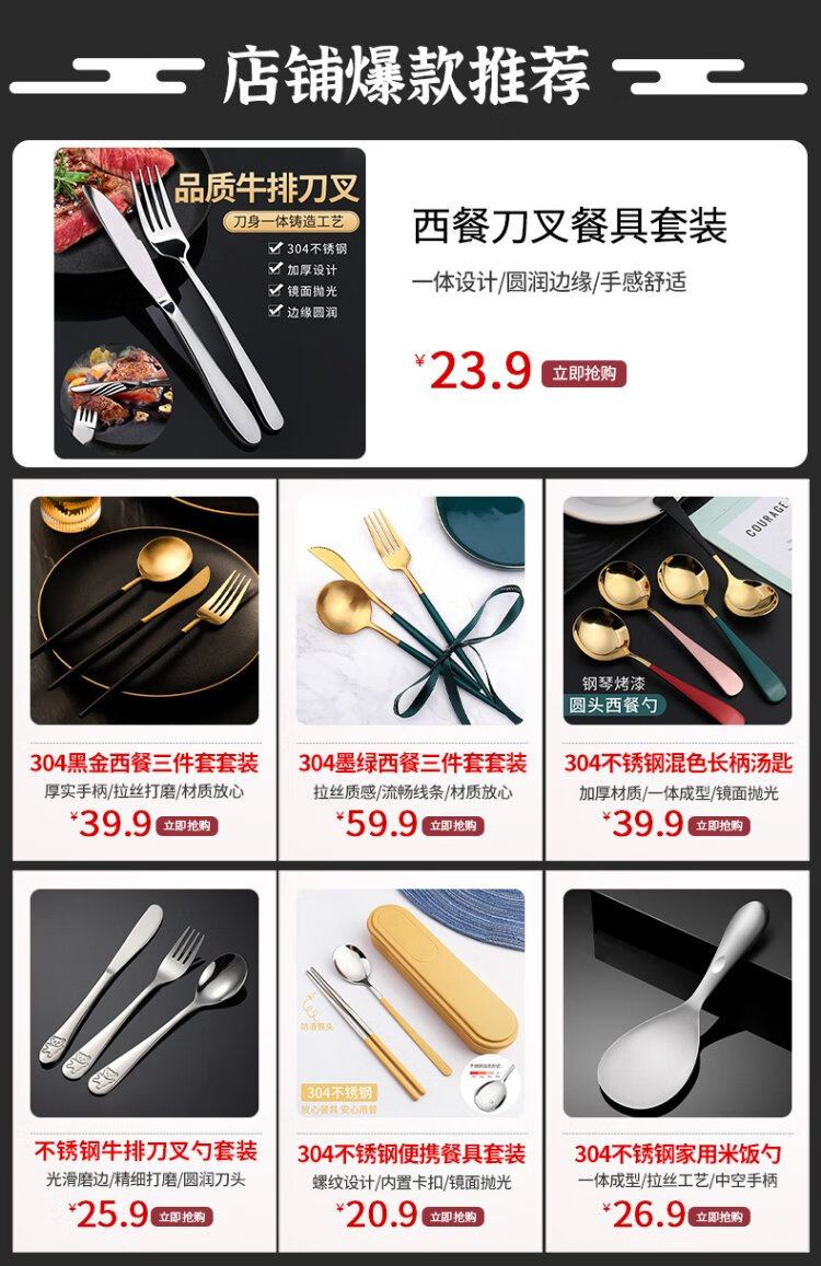 Edo304 stainless steel western steak knife and fork 410 stainless steel table knife set main table knife + main table fork + gift box