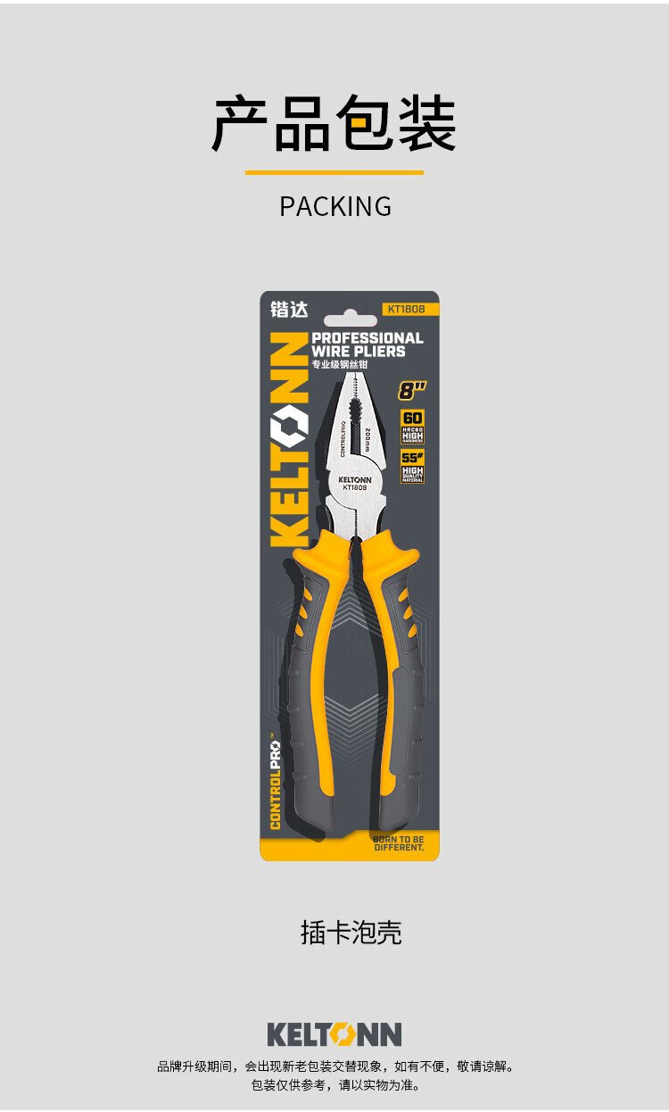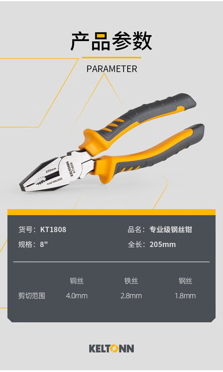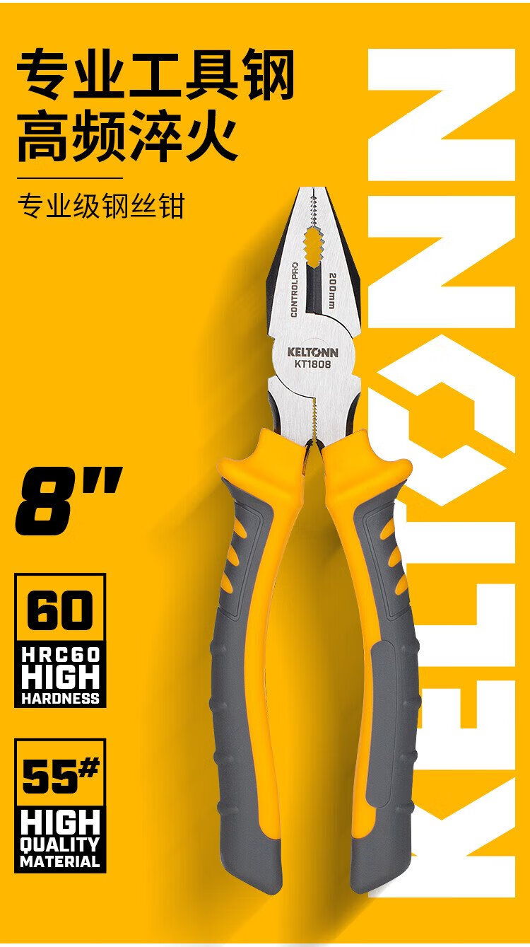 KELTONN pliers wire pliers 8-inch vise electrician clamping household tools black and rust-proof KT1808