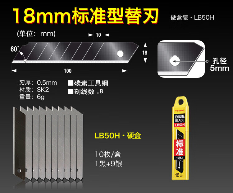 Tajima large 18mm wide utility blade 10 pieces 1102-0136
