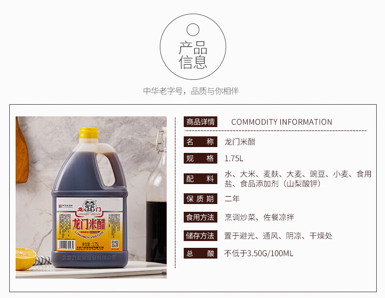 Longmen Vinegar Longmen Rice Vinegar 1.75L Old Beijing Rice Vinegar Chinese time-honored brand New and old packaging shipped randomly