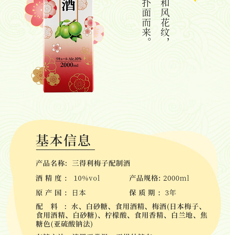 Suntory fruit wine plum wine plum wine green plum wine 10% 2L box