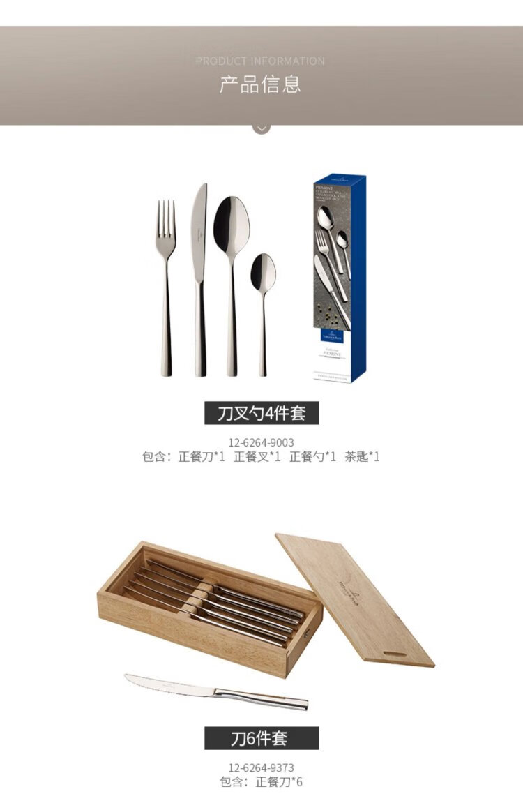German Villeroy & Boch Piermont series imported knife and fork set 1810 stainless steel knife and fork household Western food knife, fork and spoon tableware 4-piece set