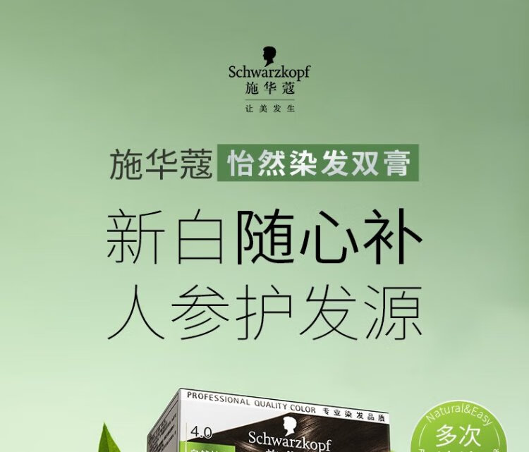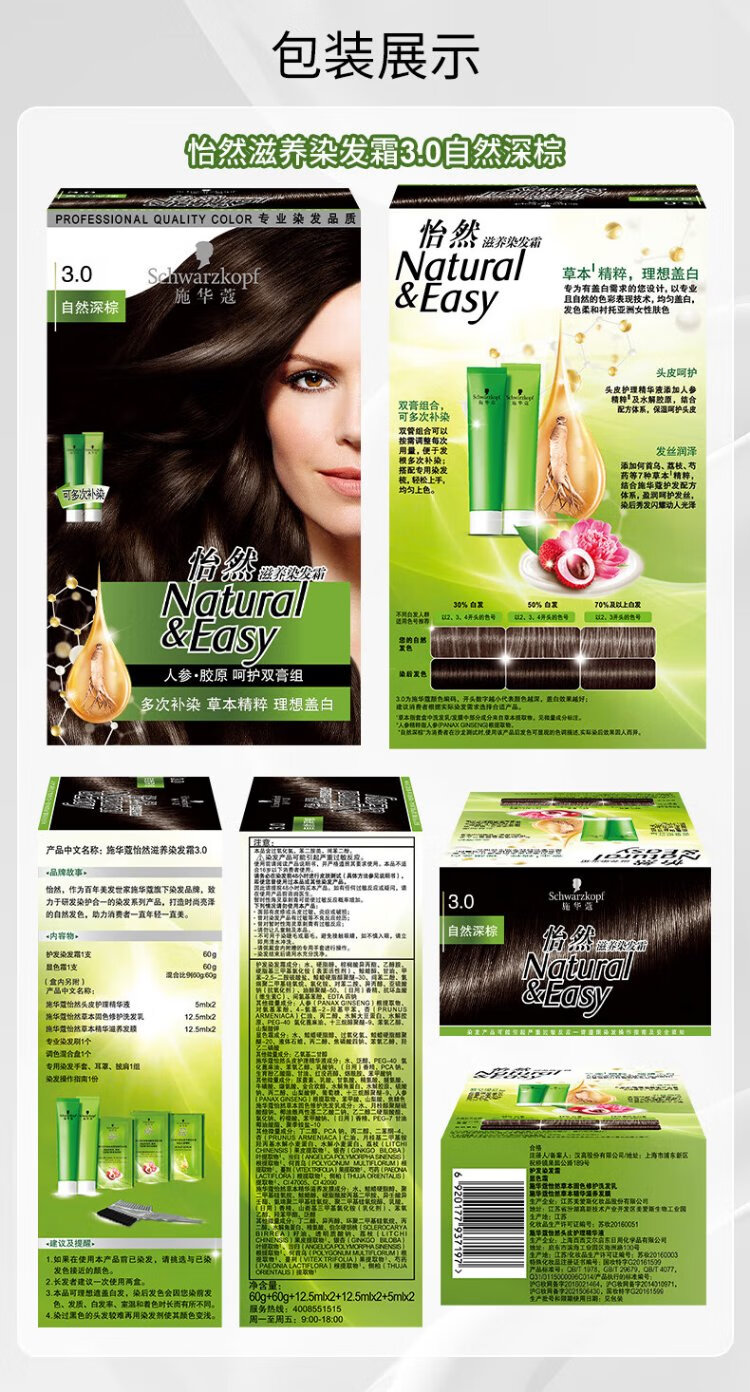 Schwarzkopf Yiran Nourishing Hair Dye Cream 3.0 Natural Dark Brown Hair Dye Cream Plant Ginseng Multiple Whitening Replenishment